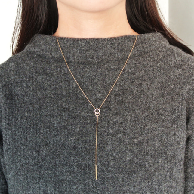 胸元にY字のシルエットを美しく描き出す、トレンドの幾何学的なデザインのネックレス。