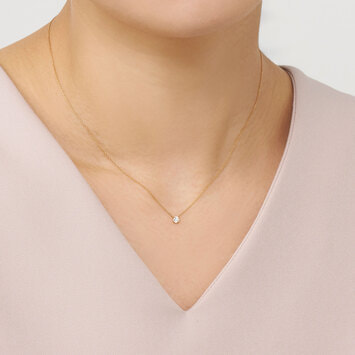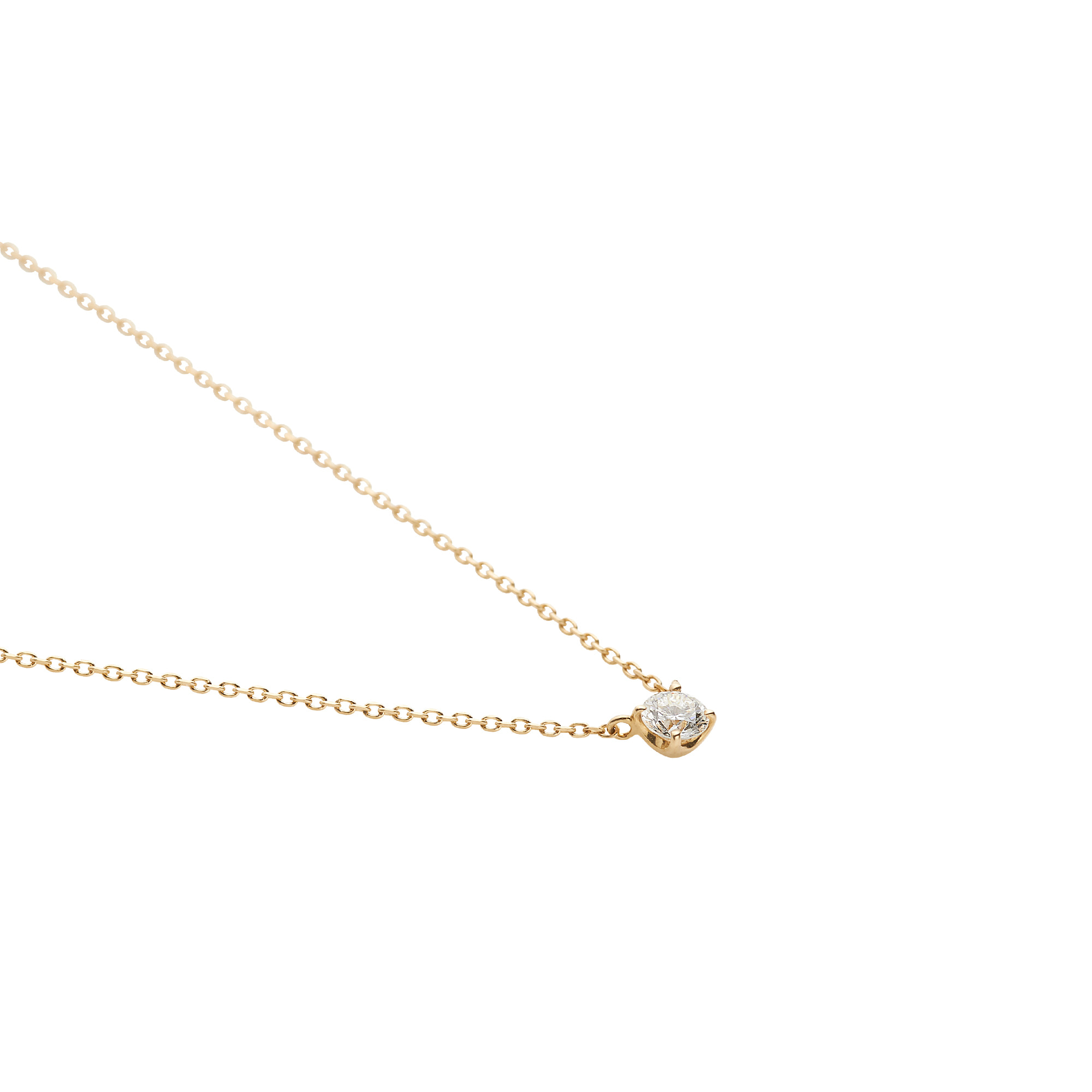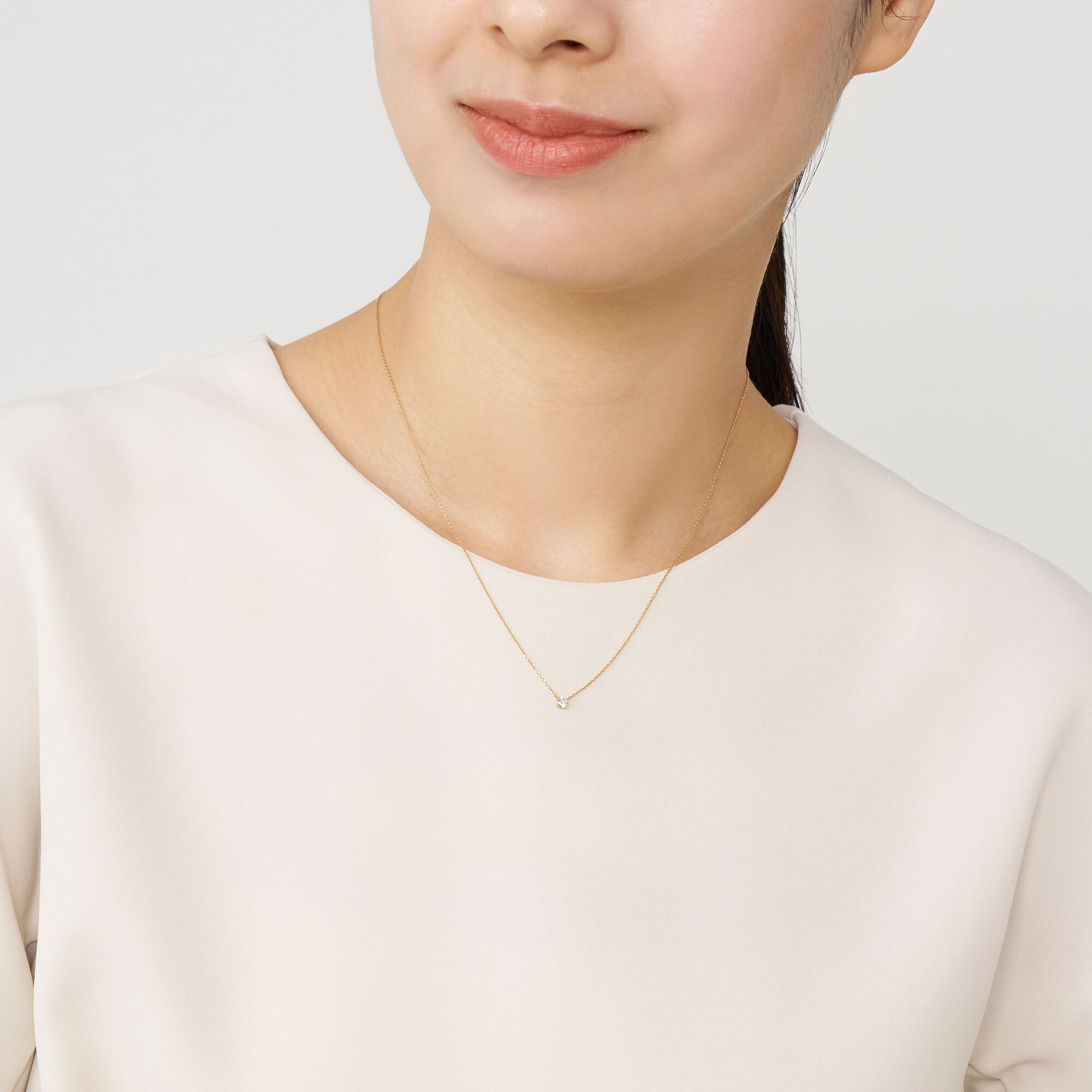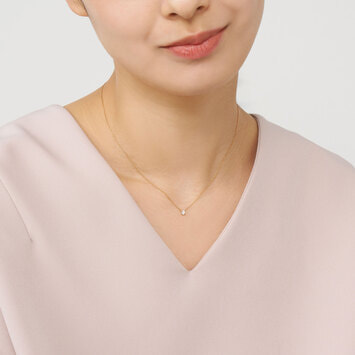 華奢で控えめなアズキチェーンを使用しているので、ダイヤモンドだけが胸元に可憐に浮かび上がります。