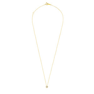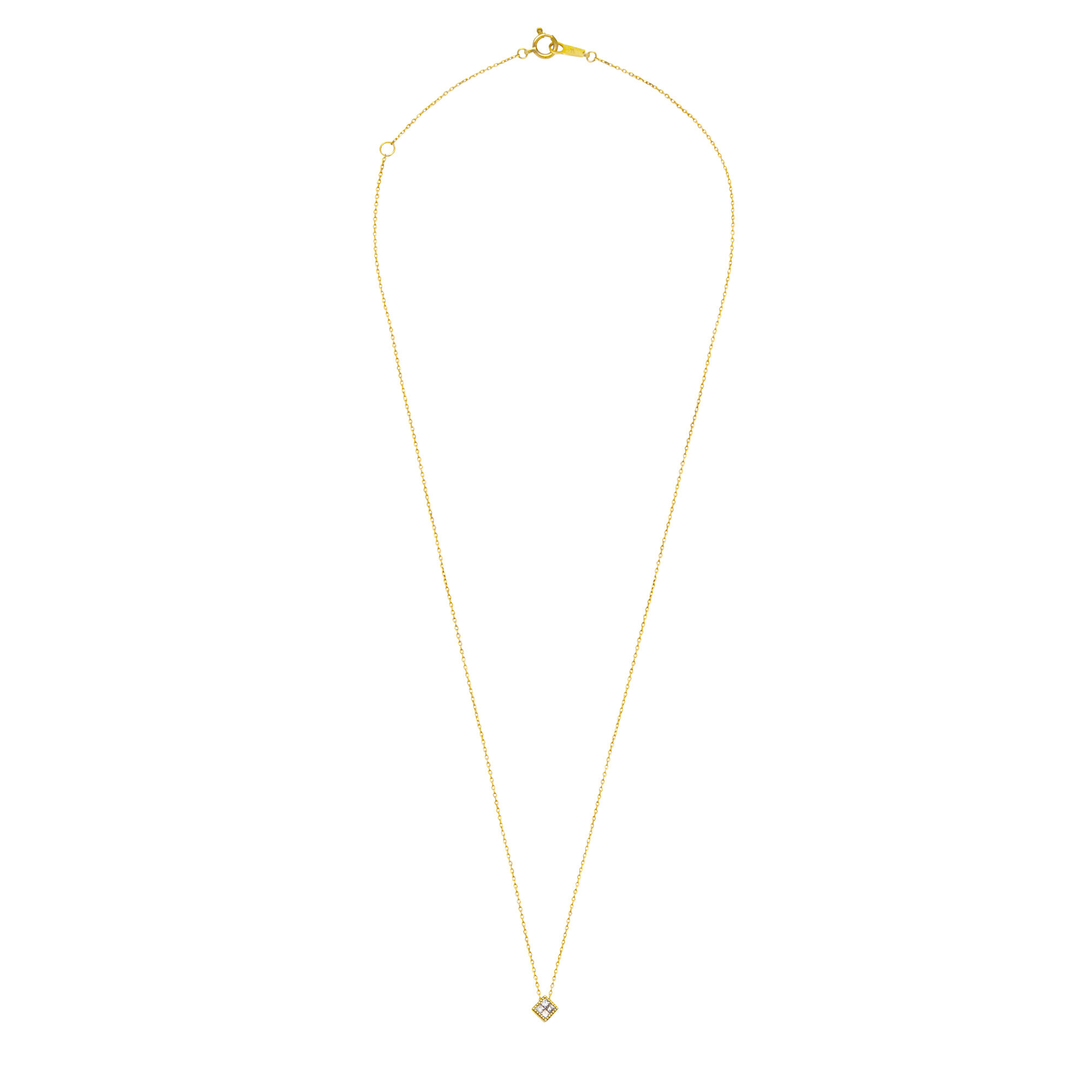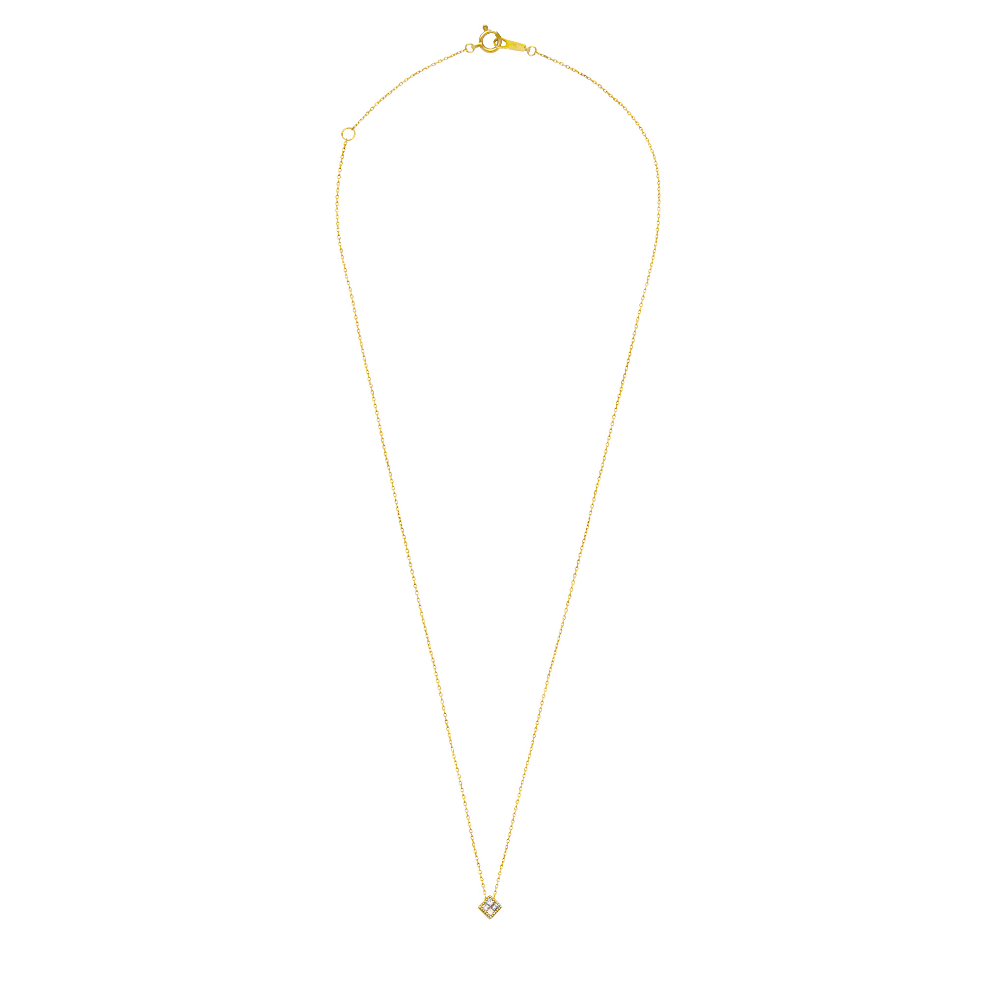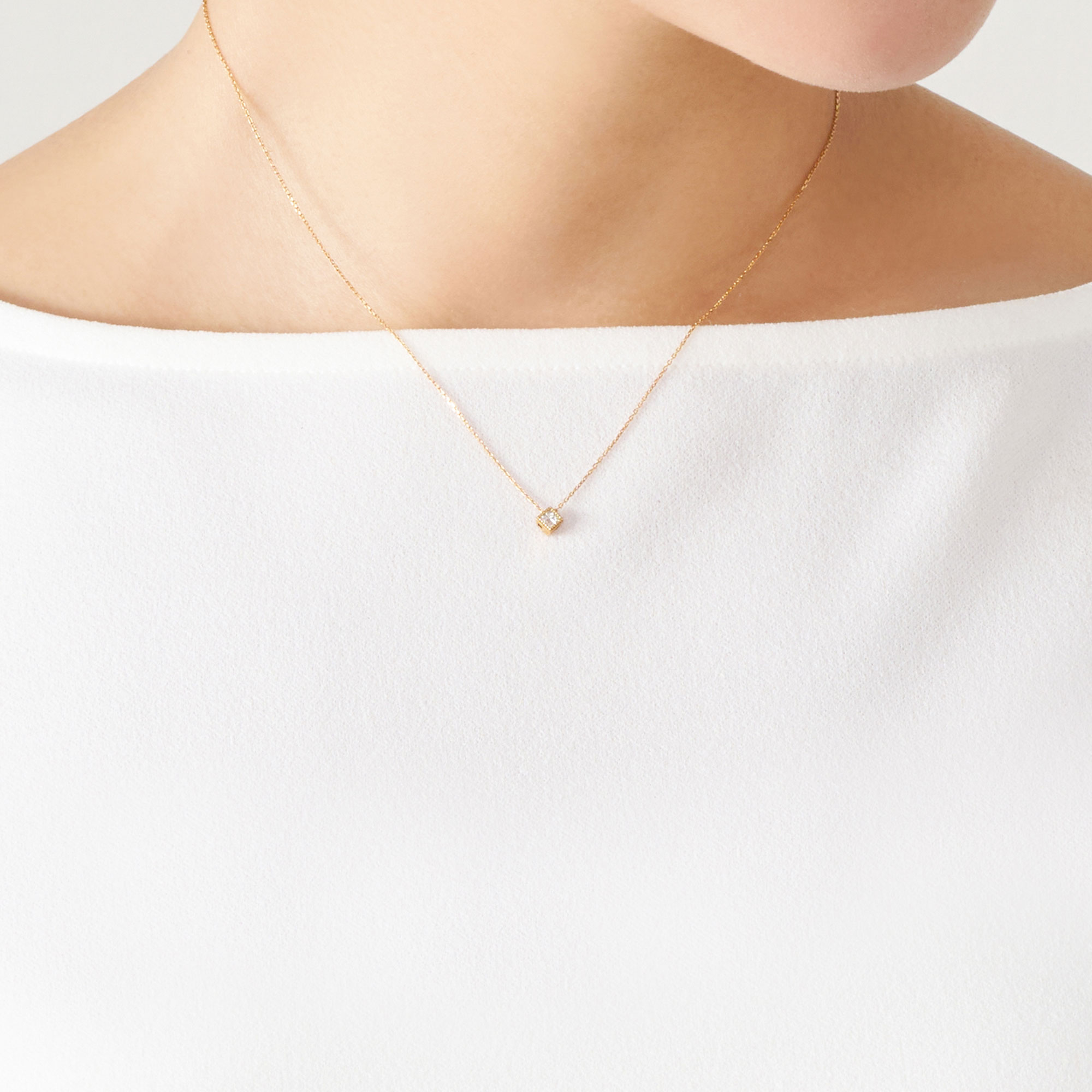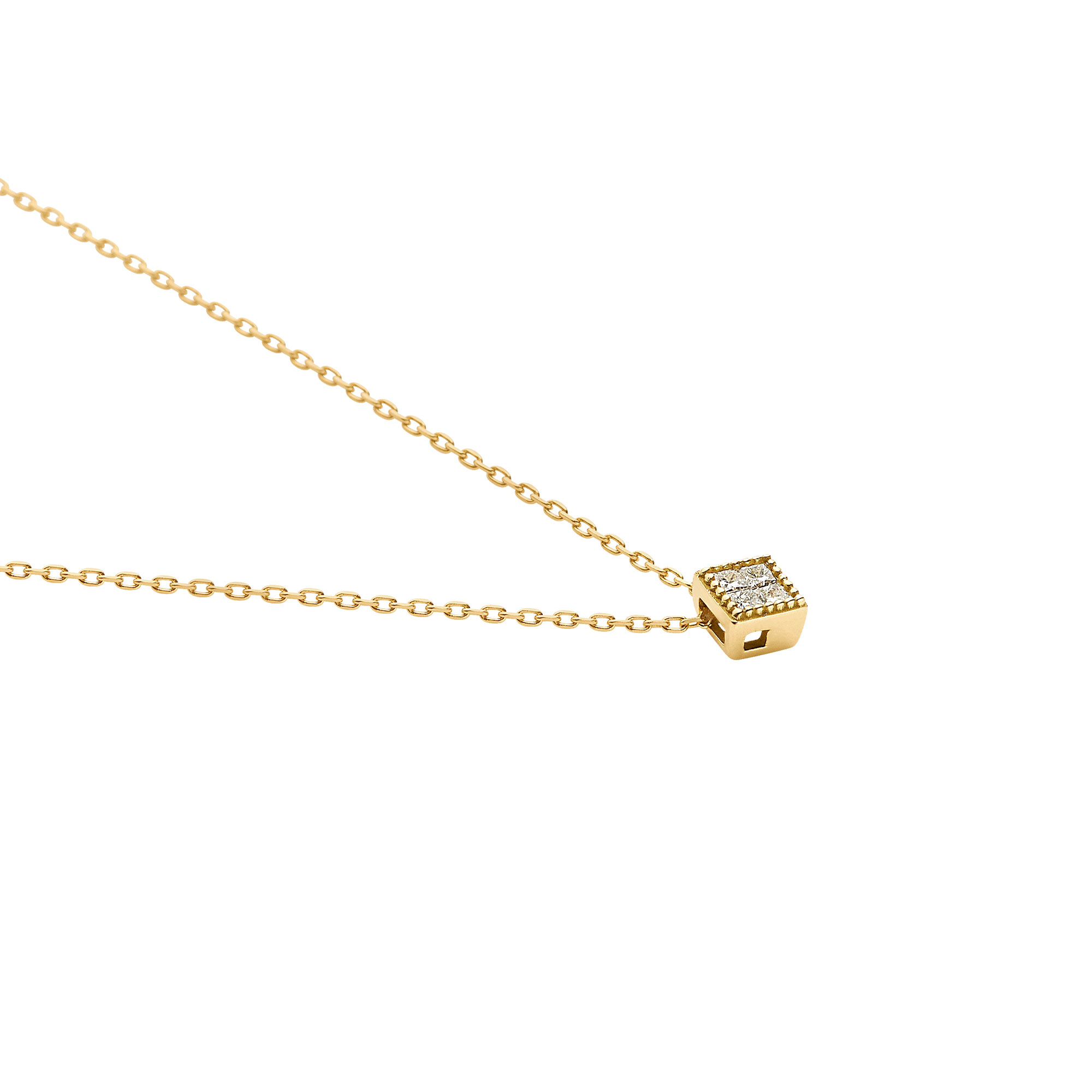 4石のプリンセスカットダイヤモンドを、イエローゴールドのミルで囲ったネックレス。