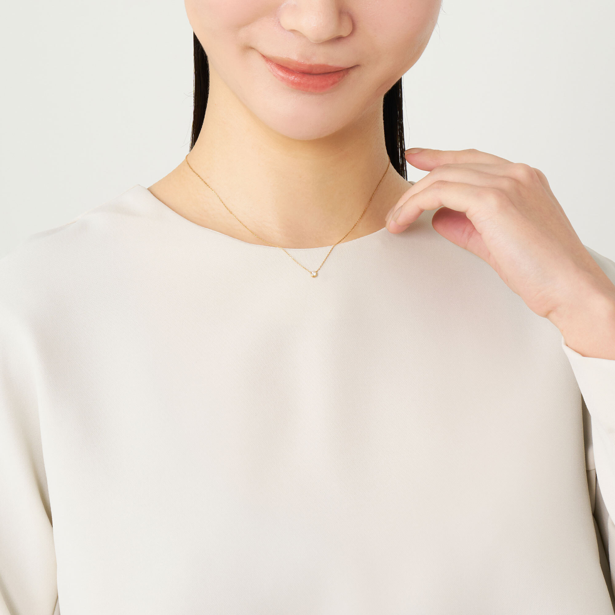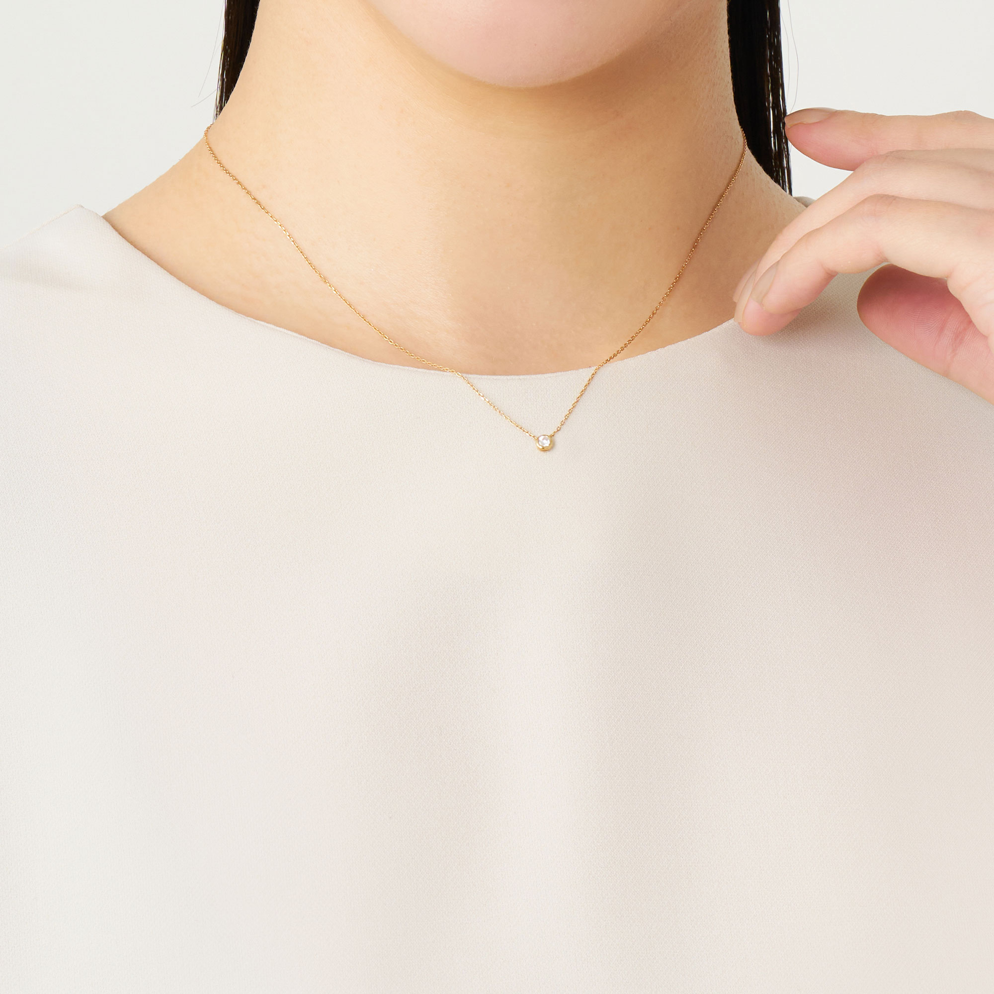 艶やかなイエローゴールドで縁取られたダイヤモンドが煌めく、華やかな表情に胸元が明るく映えるセルクルネックレス。