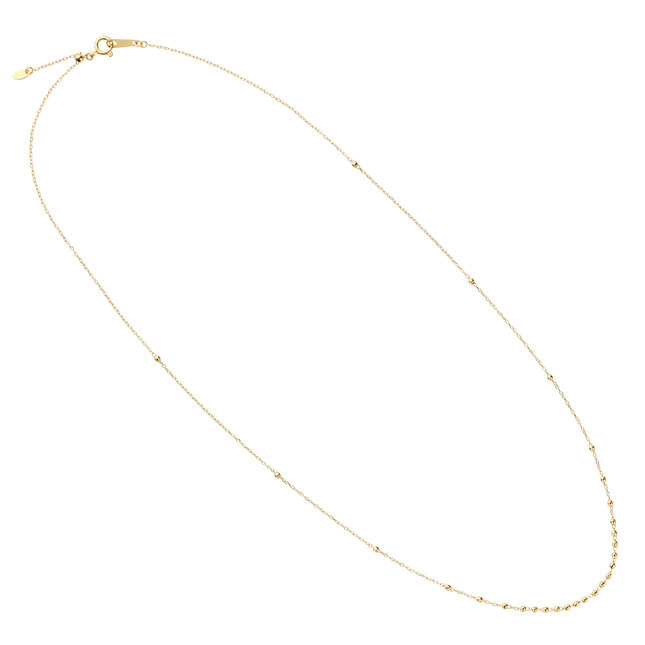 1本でシンプルに使うのはもちろんのこと、スライドアジャスター仕様なので、自由に長さ調節ができ、お手持ちのネックレスとの重ね着けも楽しめます。