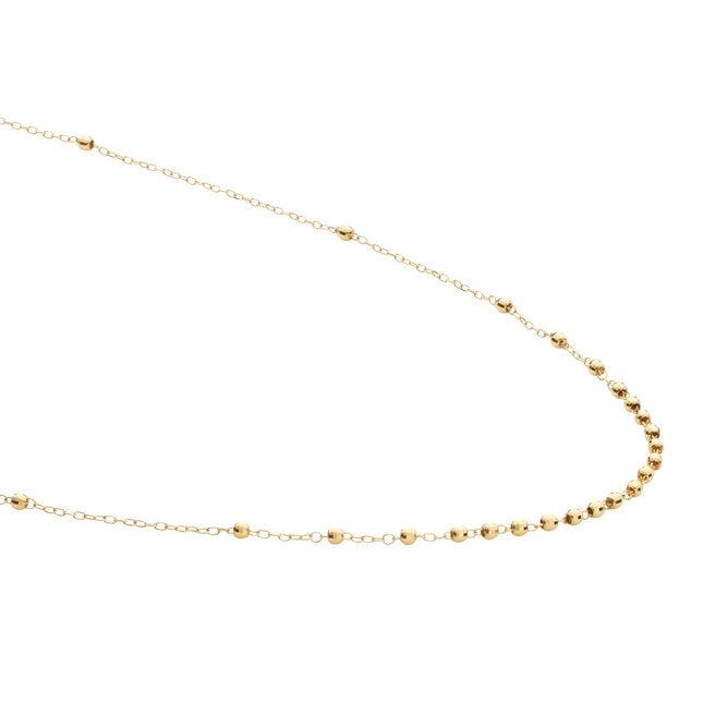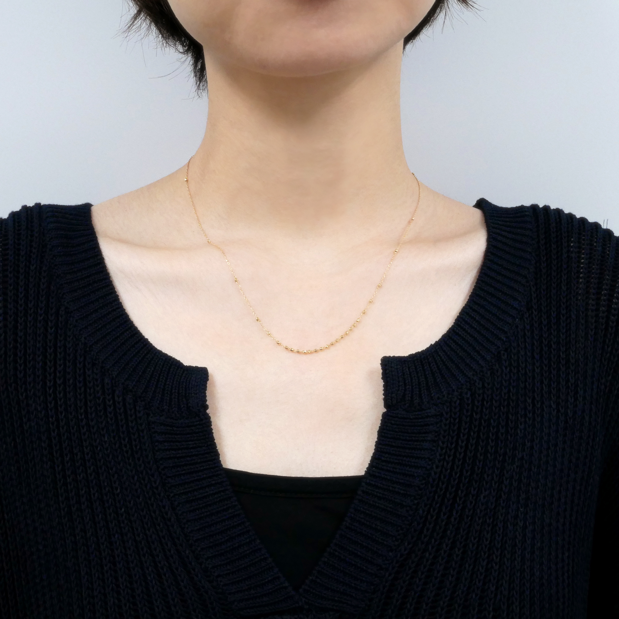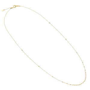 イエローゴールドのパーツがきらめくシンプルなチェーンネックレス。