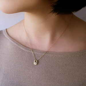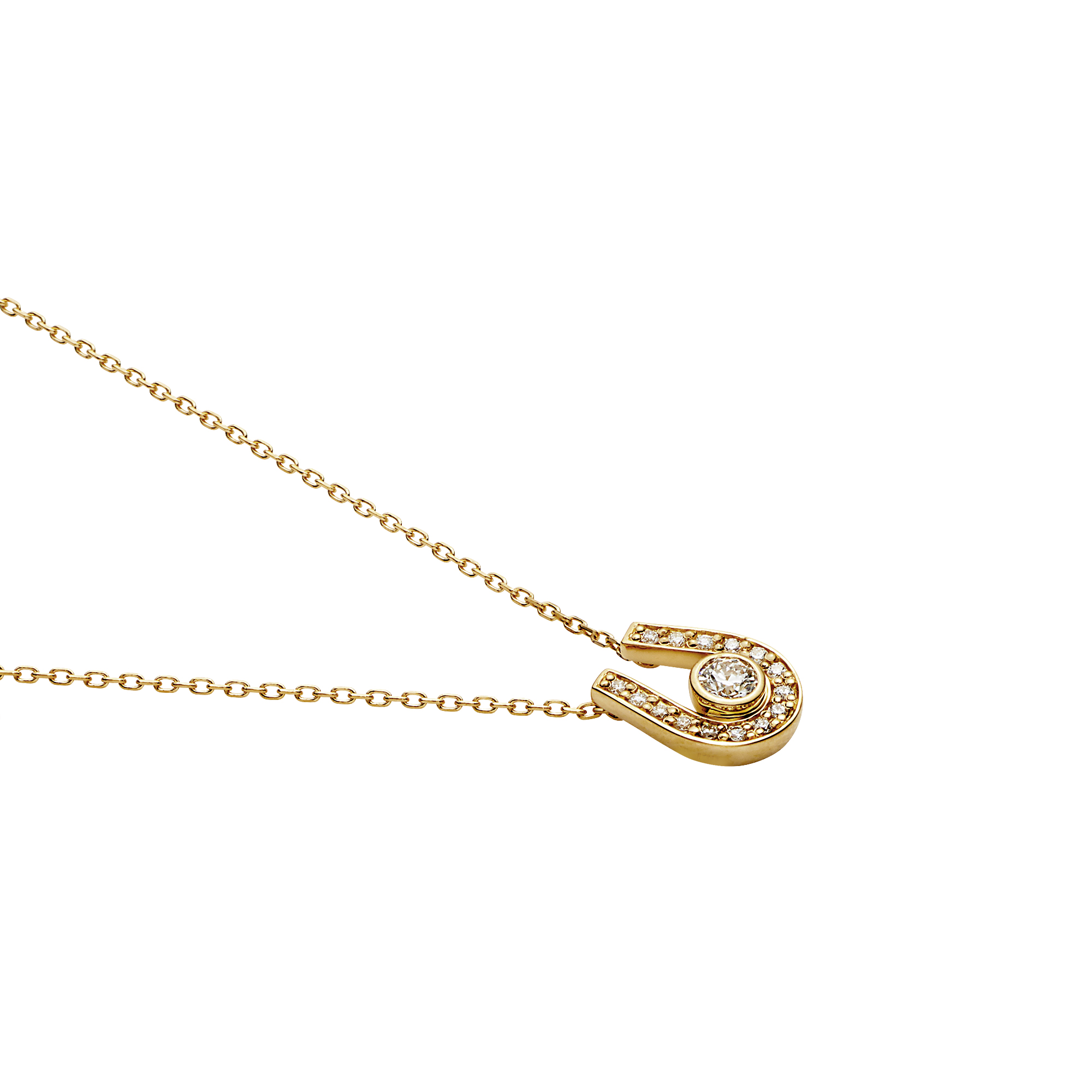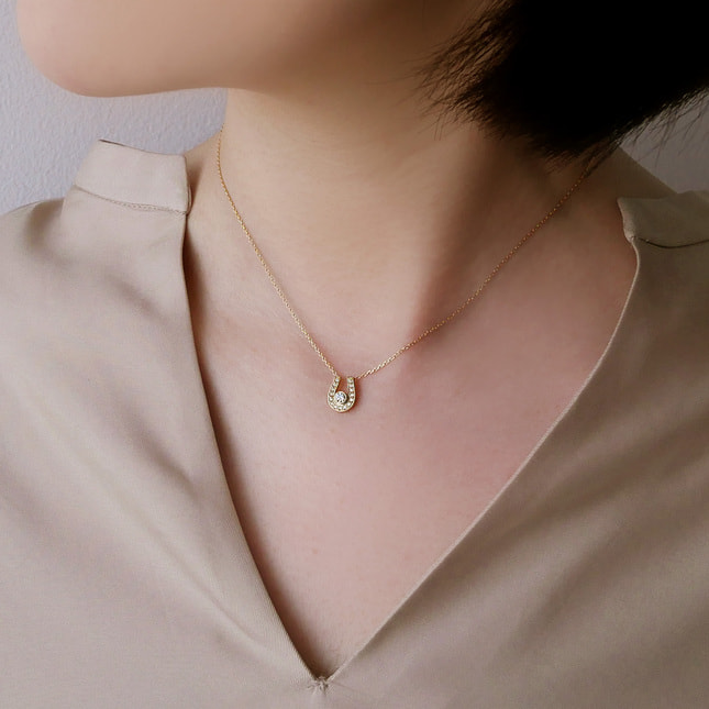 定番の馬蹄モチーフをエレガントなムードにアレンジしたネックレス。
