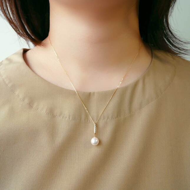 ベーシックなデザインはオンオフ問わず、様々なコーディネートに合わせやすく、アコヤパールの柔らかい色合いが、女性らしさを引き立てます。