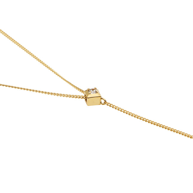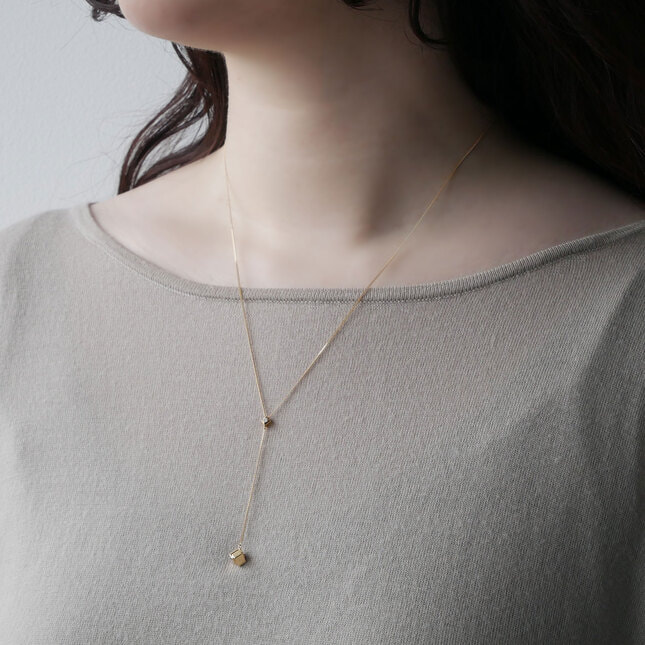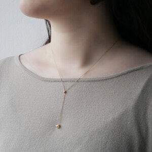滑らかなゴールドチェーンの光沢が、胸元にY字のラインを描くネックレス。
