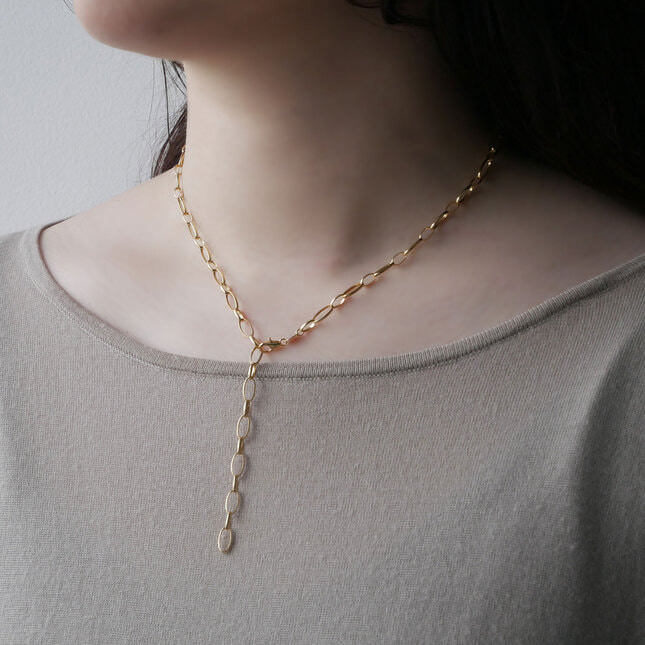 どのパーツにもフックが掛けられるため、お好みの長さに調節でき、Y字ネックレスとしてもお着けいただけるアイテムです。