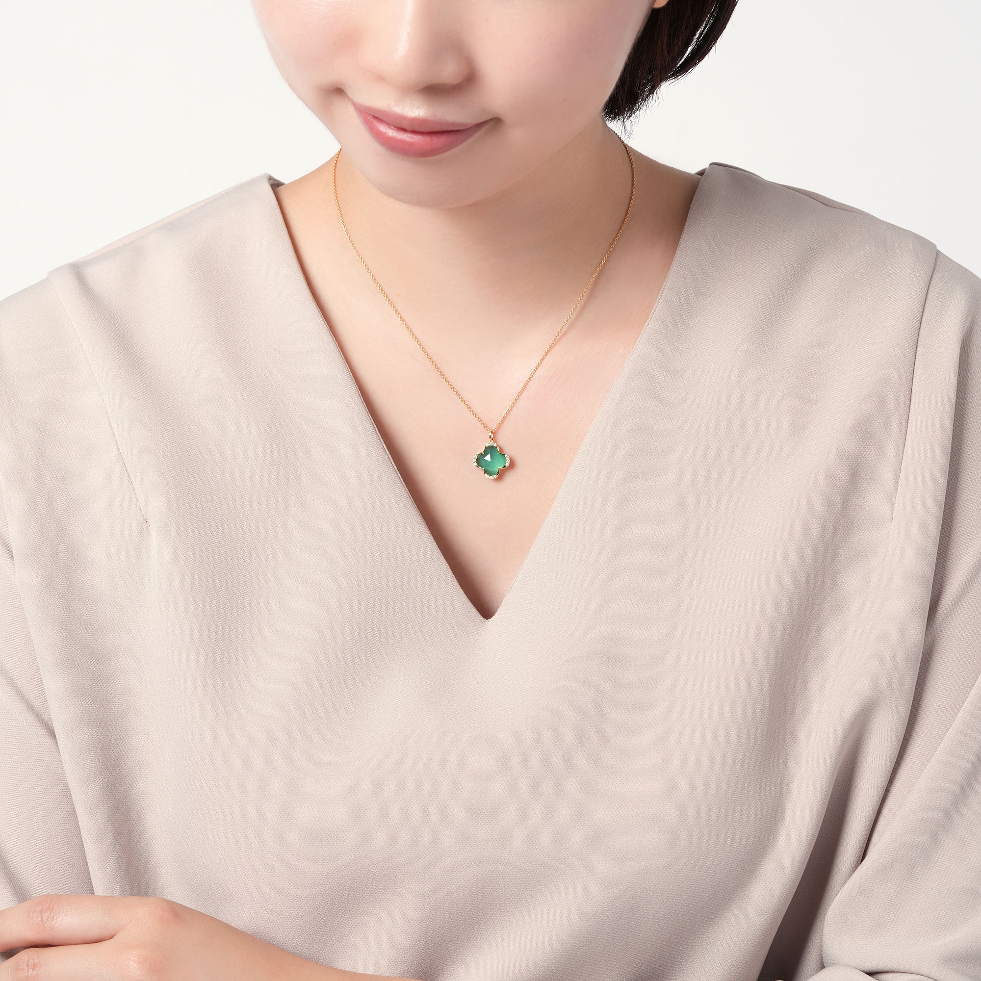 K18イエローゴールド、グリーンカルセドニー、グリーンクォーツ、ダイヤモンド