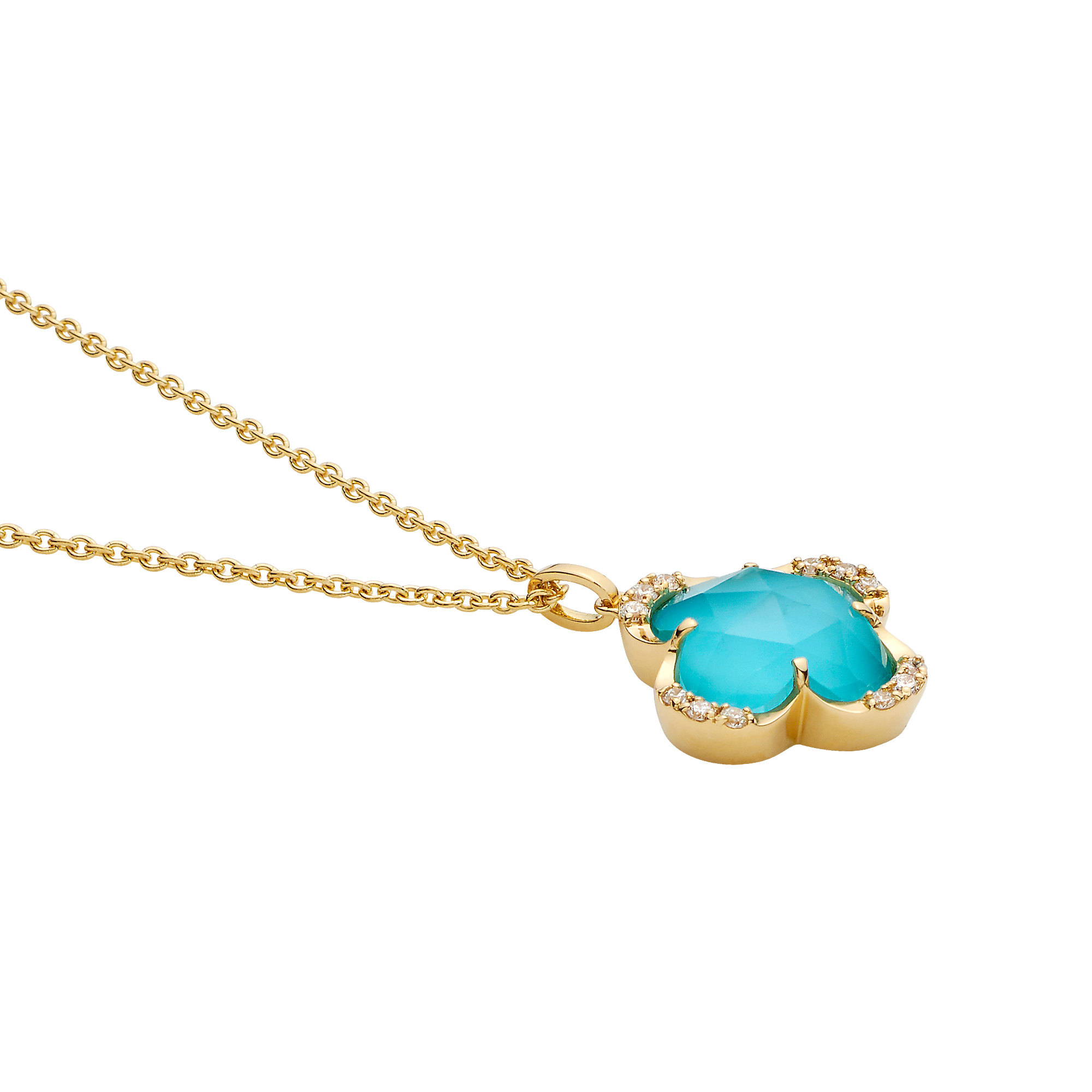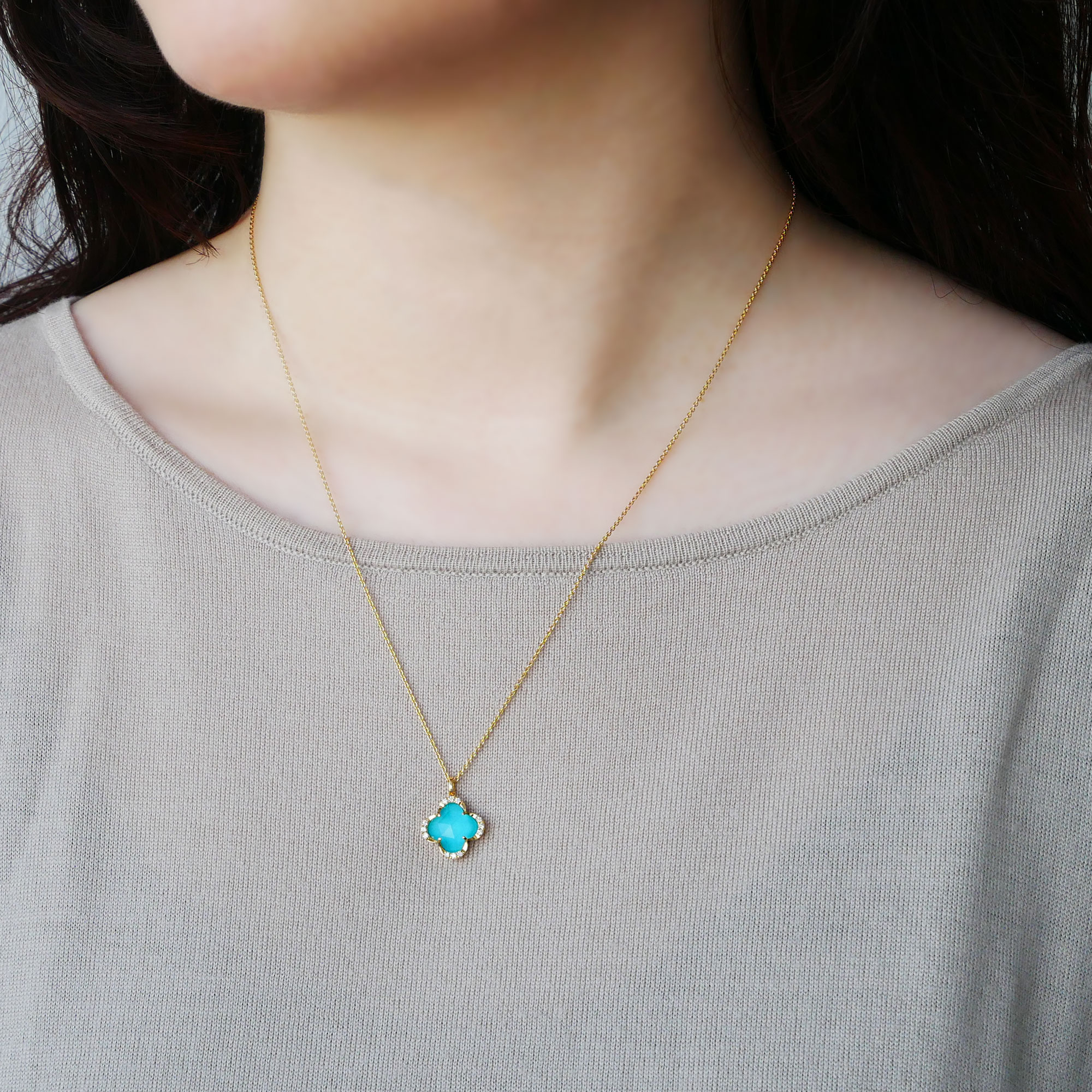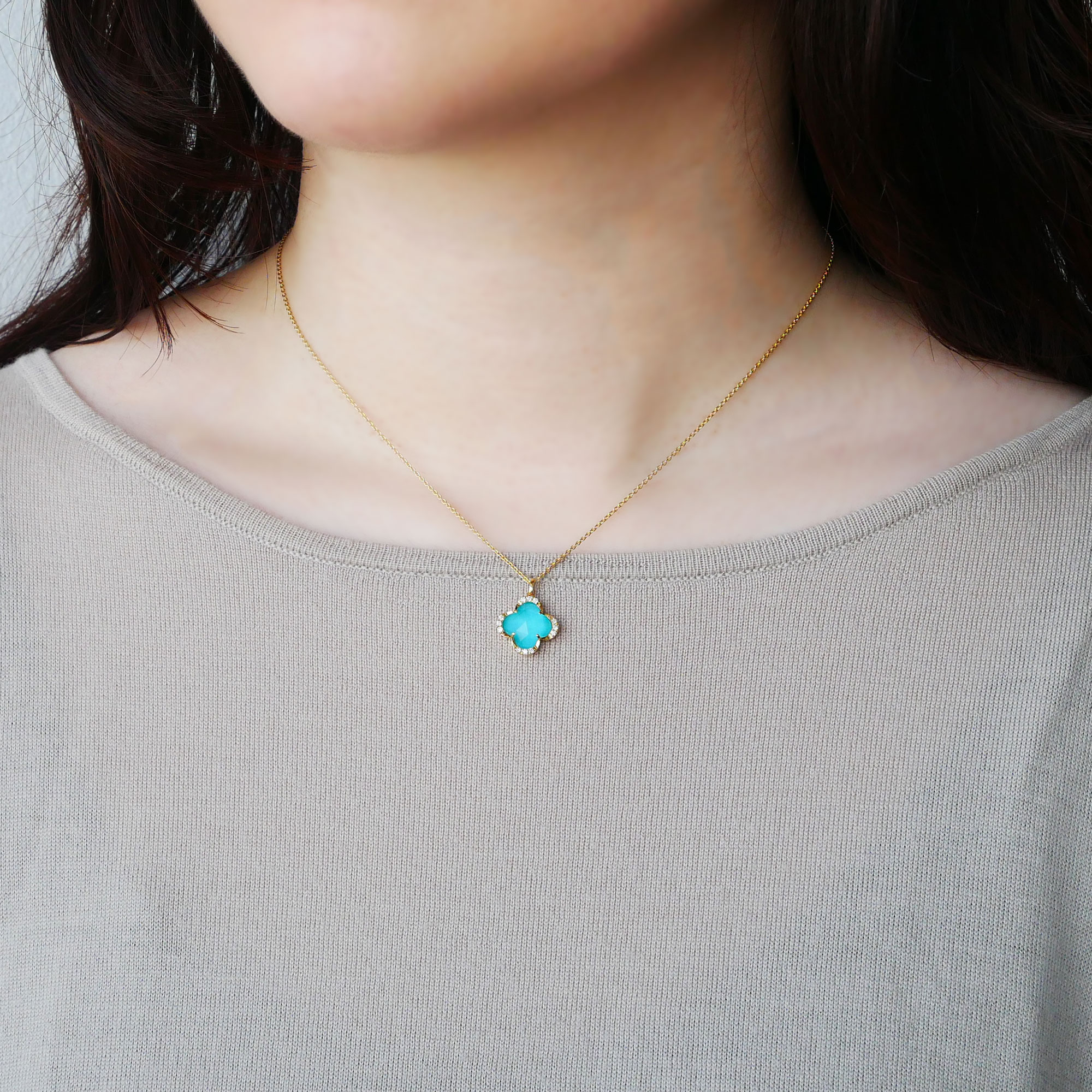 イエローゴールドに色鮮やかなターコイズとクォーツを組み合わせたネックレス。