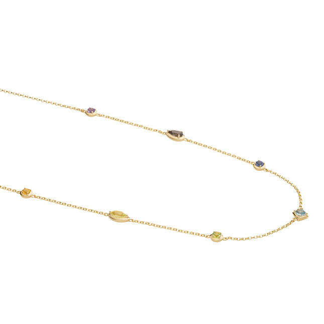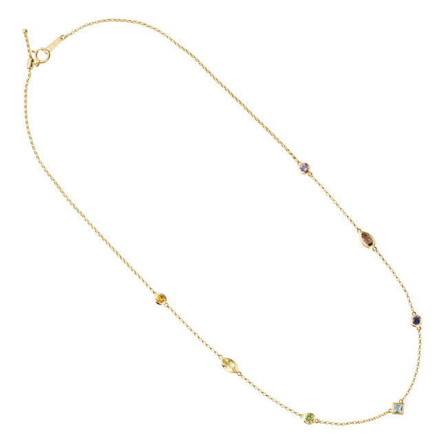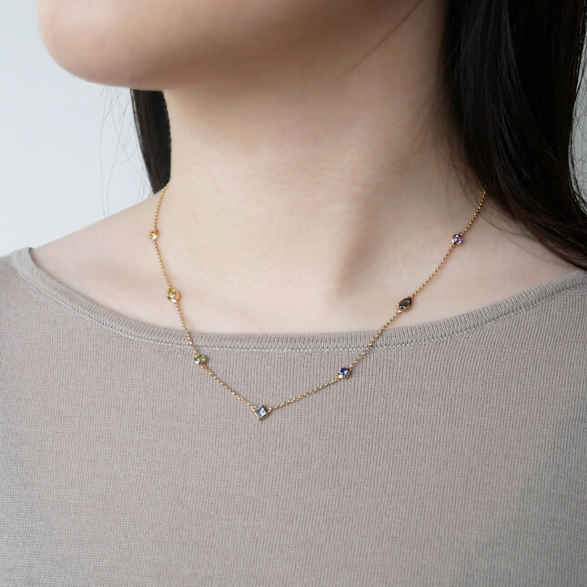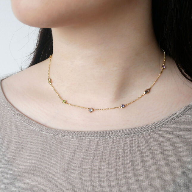 7色のカラーストーンで、色とりどりの花々をイメージしたネックレス。