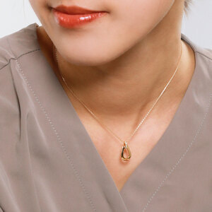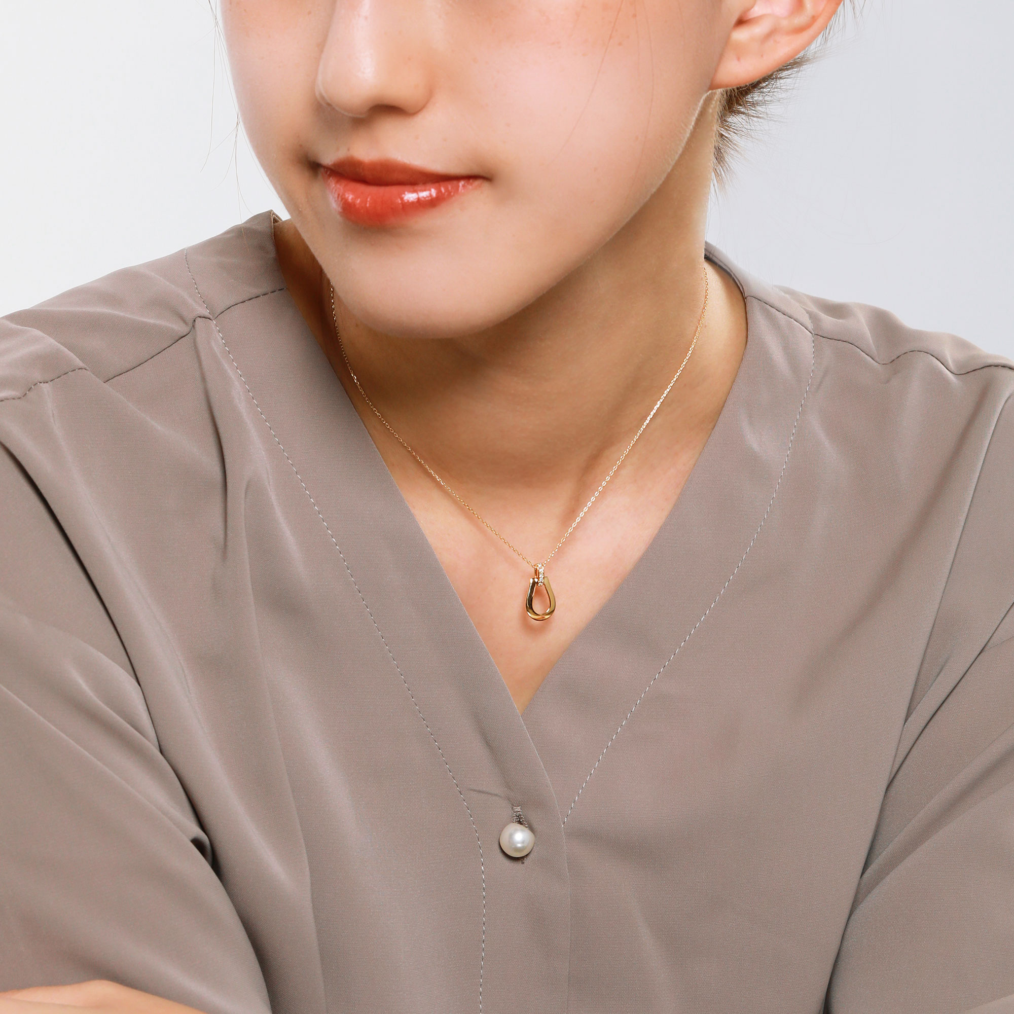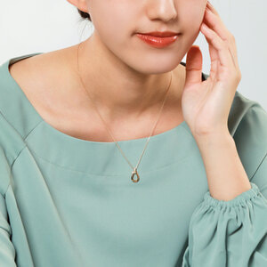 定番の馬蹄モチーフを、エレガントなムードにアレンジしたネックレス。