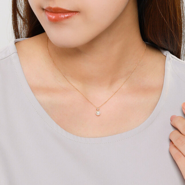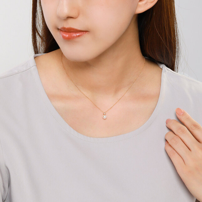 柔らかい光沢とみずみずしいきらめきのコントラストが、胸元に優しい光をプラス。