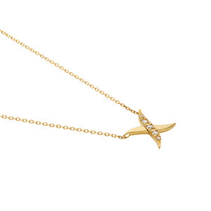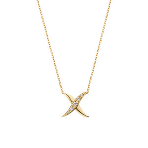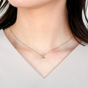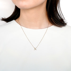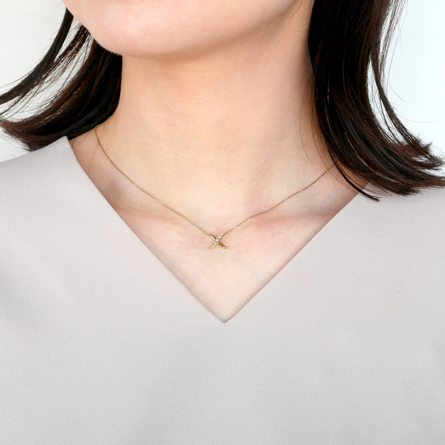 柔らかなラインで描かれたモチーフが、胸元でグラフィカルにきらめくネックレス。