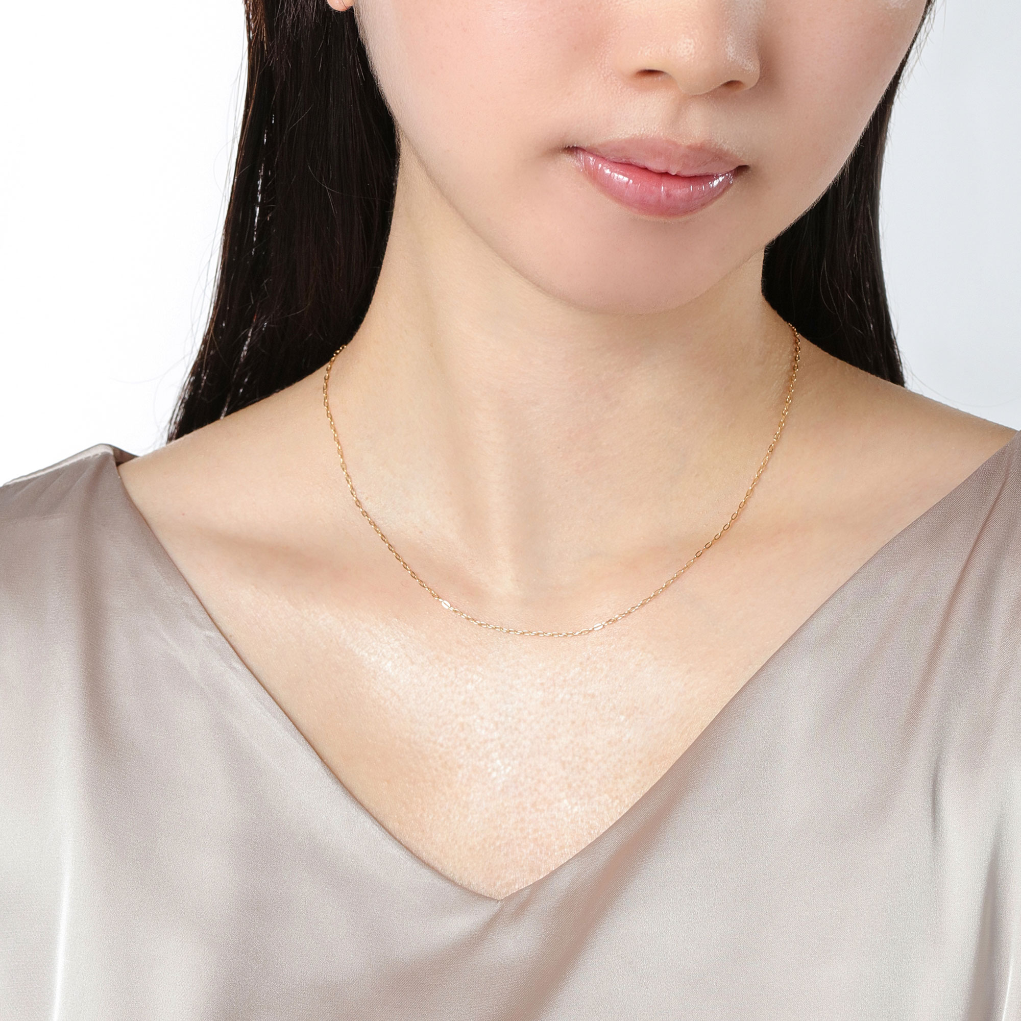 50cmは程よい長さでカジュアルになりすぎることなく、大人っぽい印象に仕立てます。