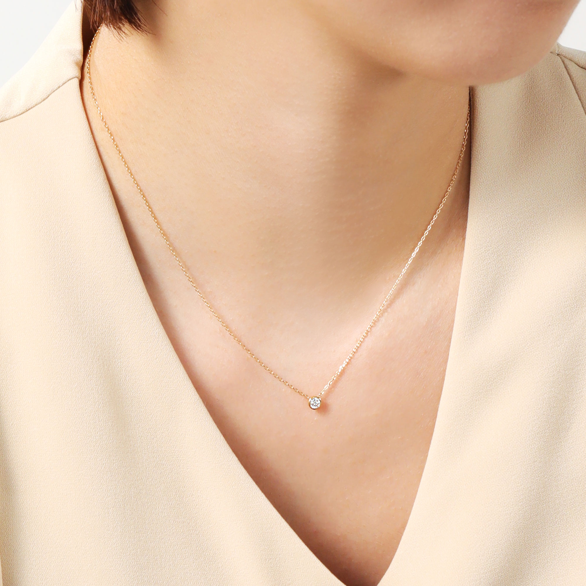 ダイヤモンドの輝きを最大限に引き立てるよう、シンプルを極めたセルクルネックレス。