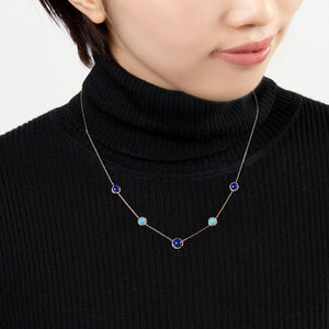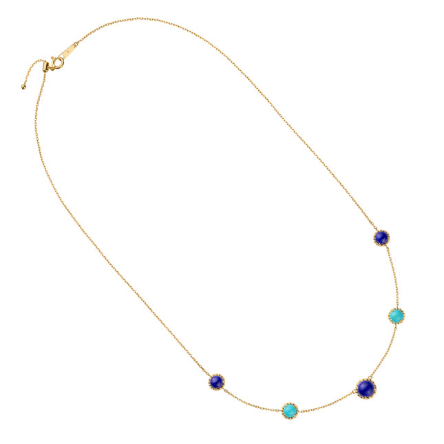 透けることのないラピスラズリとターコイズは、どの角度から見ても石の持つ深い色合いを楽しめます。