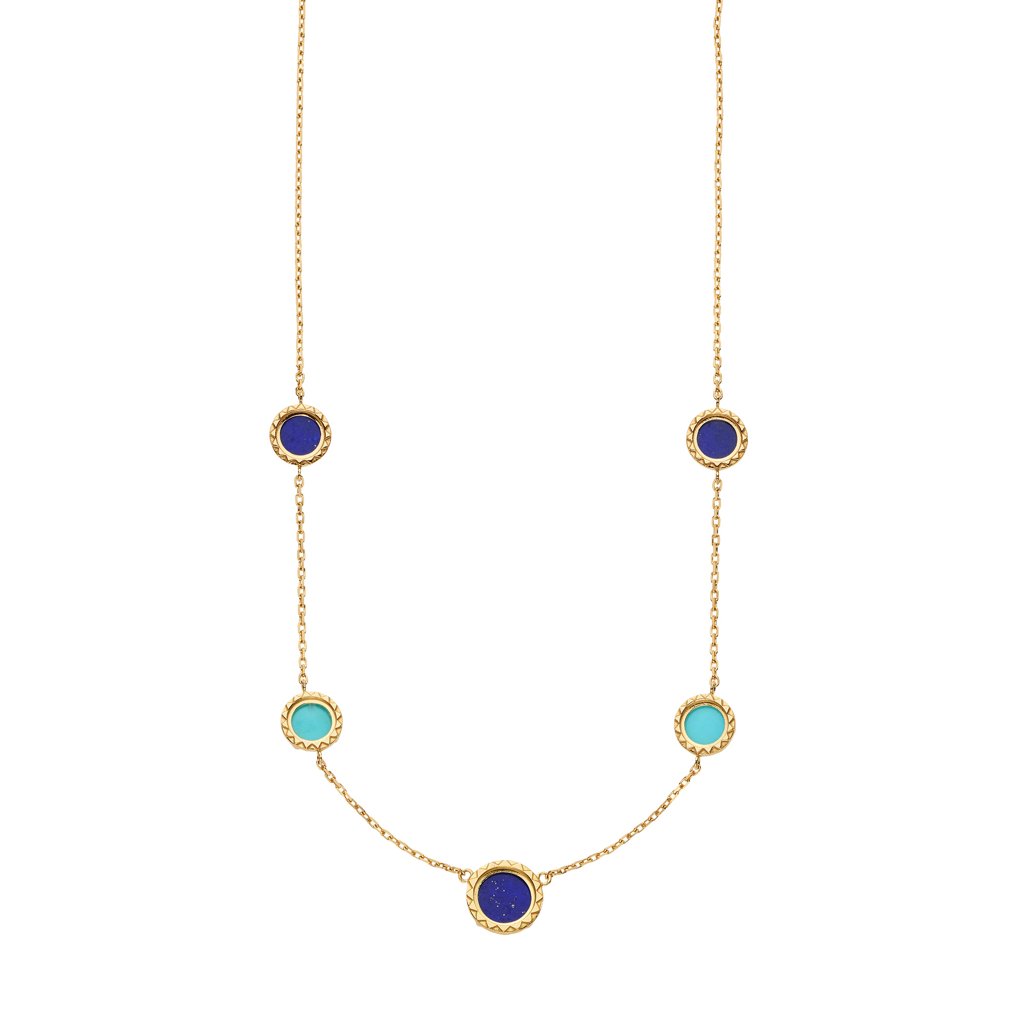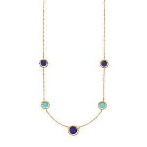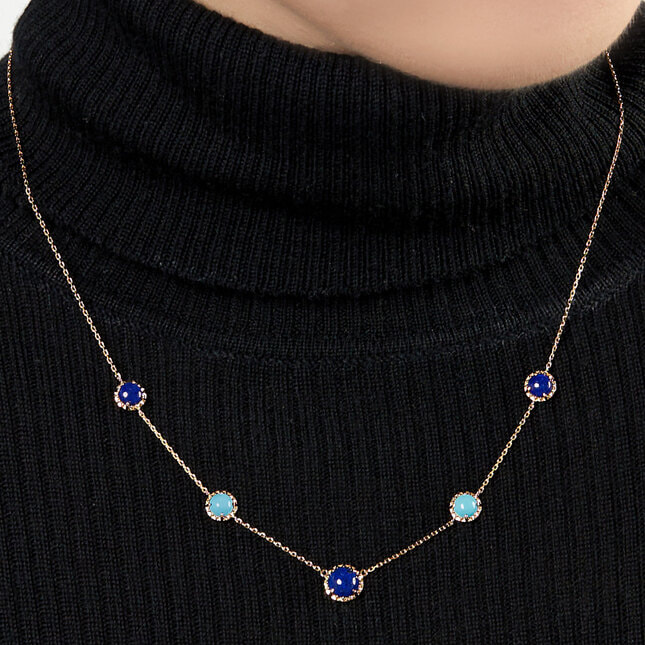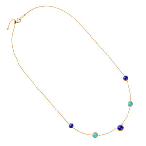 ラピスラズリの紺碧のブルーとターコイズの鮮やかな色合いが印象的なネックレス。