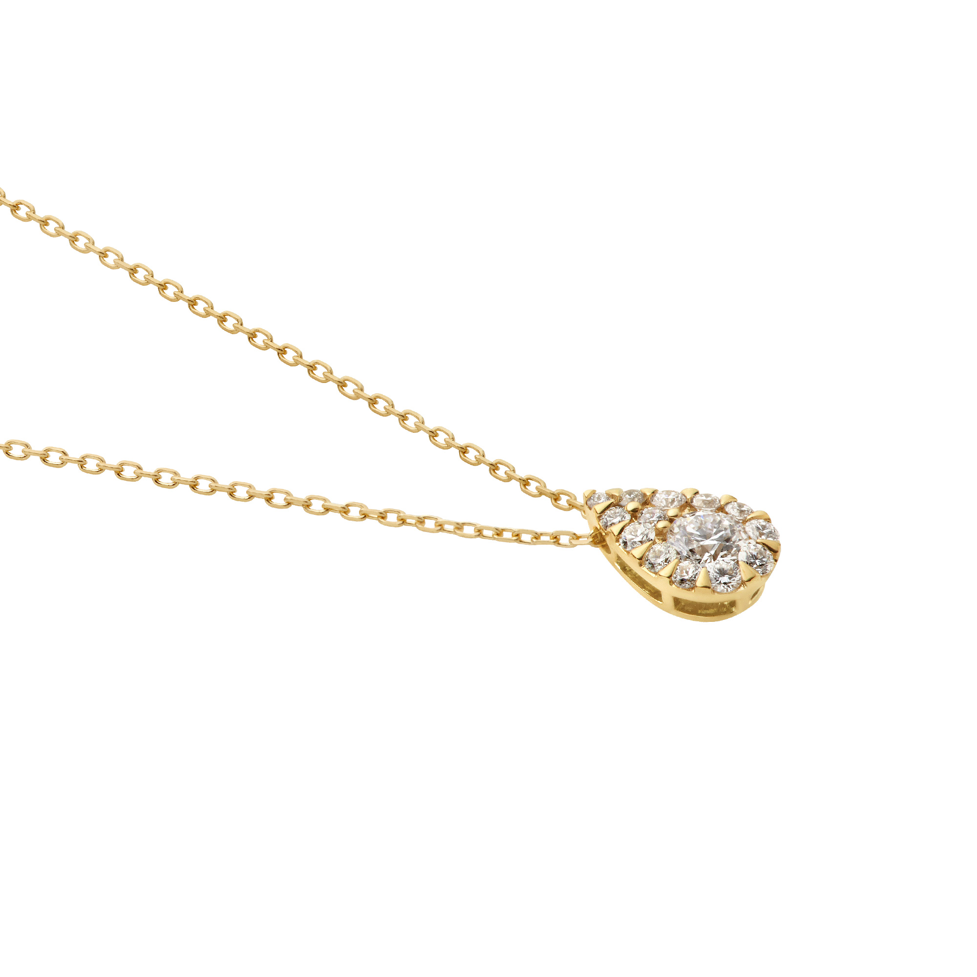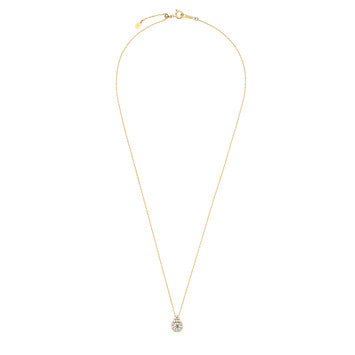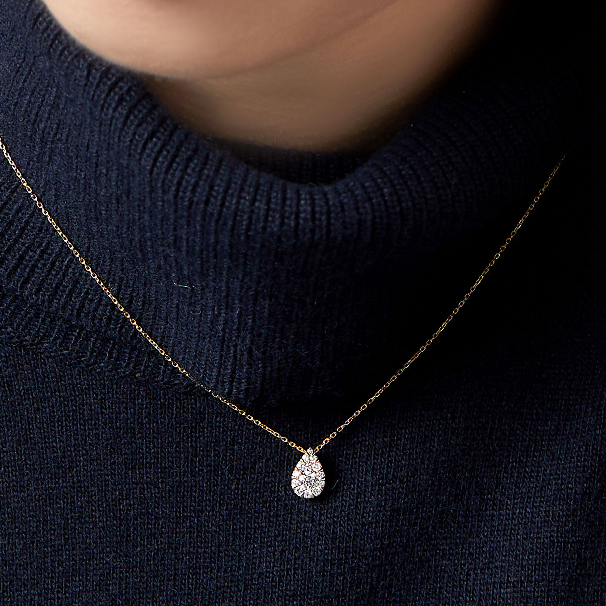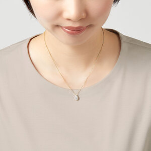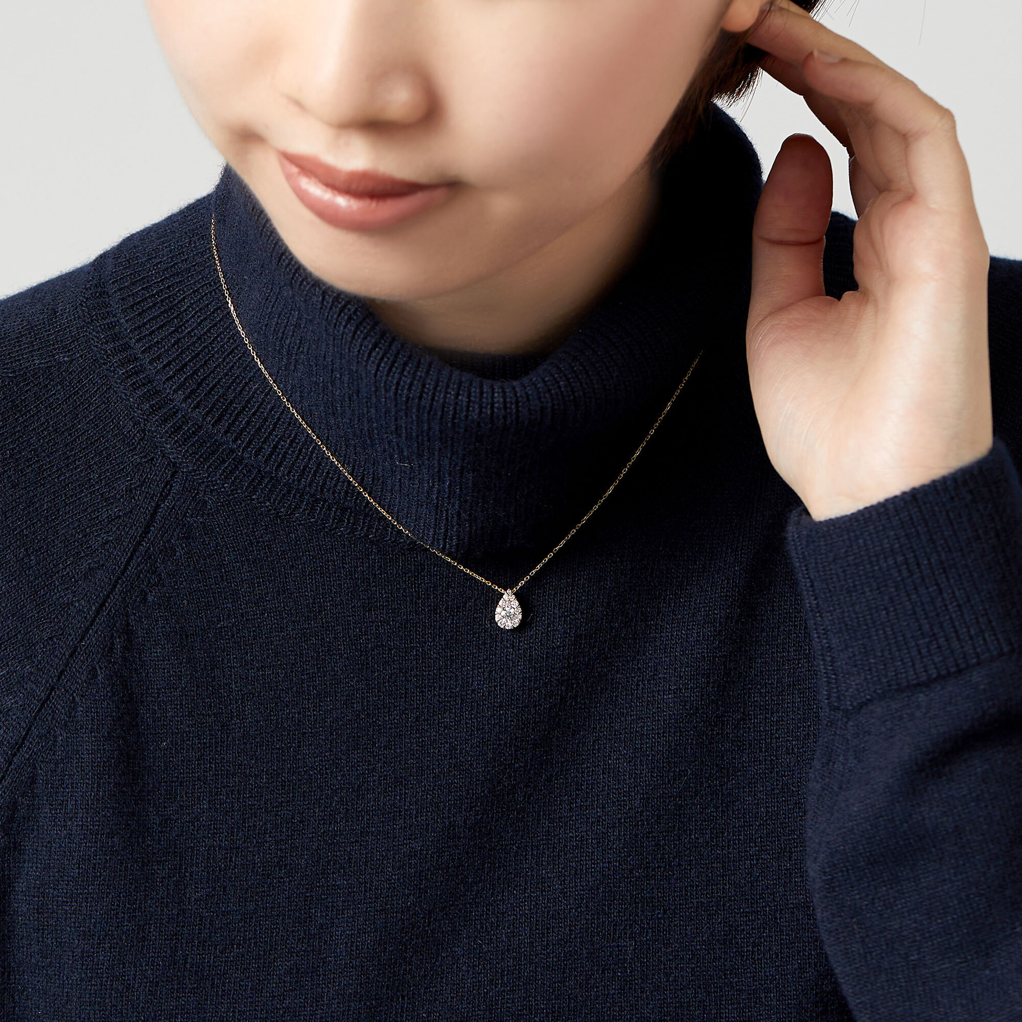 センターのダイヤモンドに爪を使わず、周囲のメレダイヤモンドで押さえて留めることで生まれる一体感ある強い輝きが魅力のネックレス。