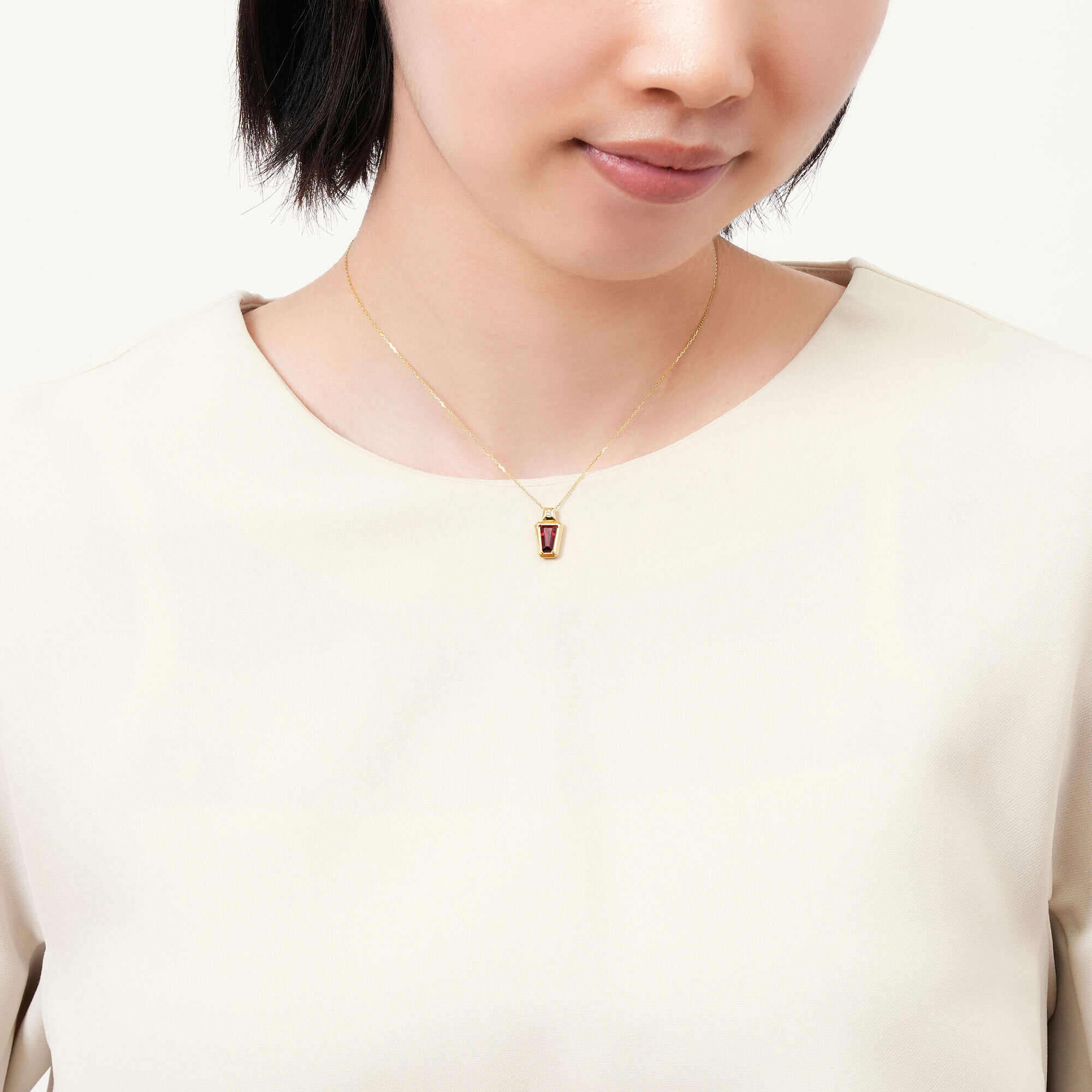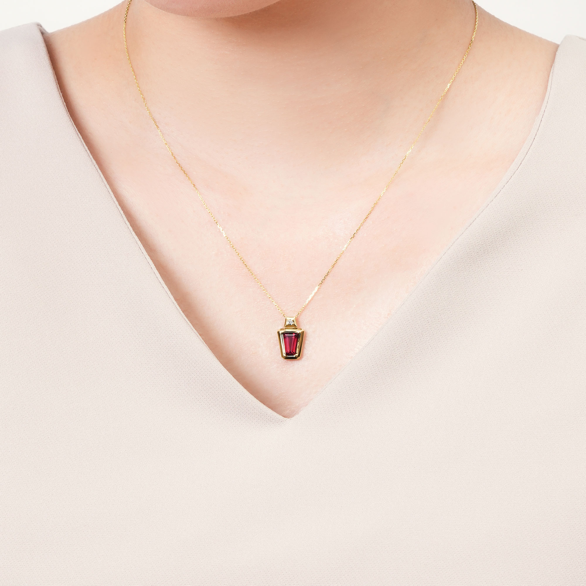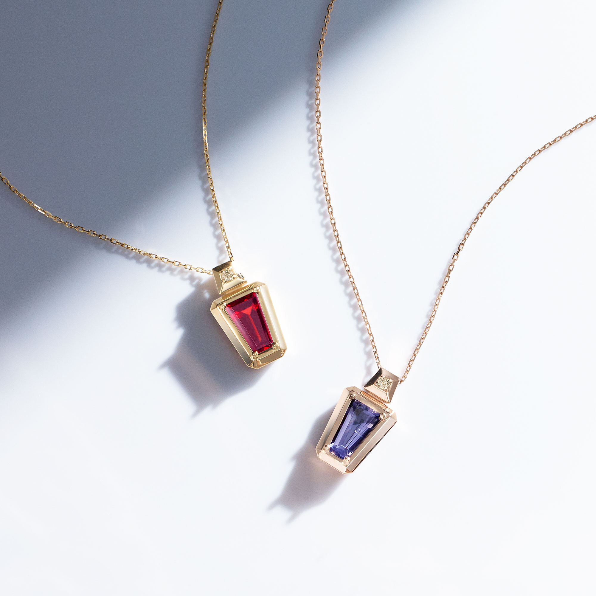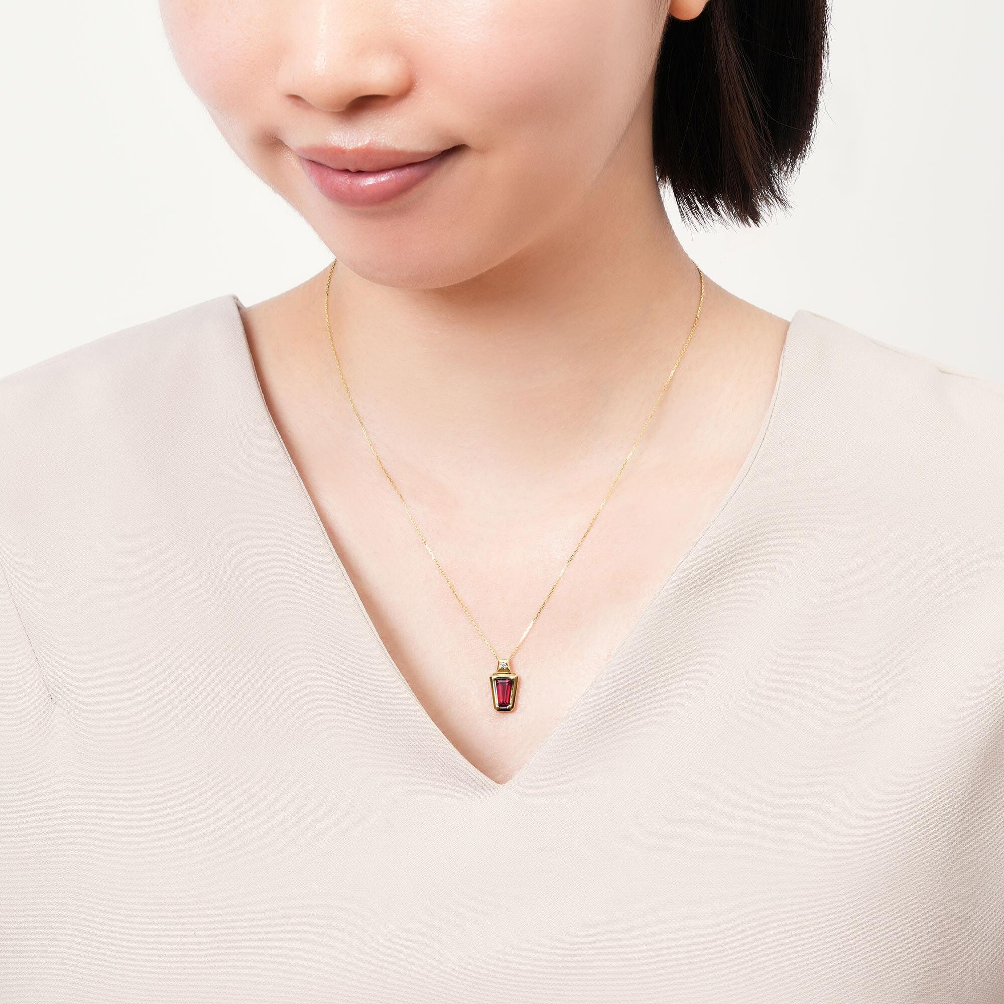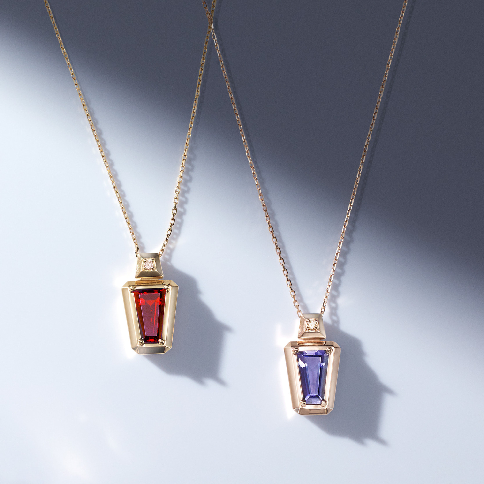 深みのあるガーネットの色合いとブラウンダイヤモンドのシックなきらめきが、ロマンティックなムードを演出します。