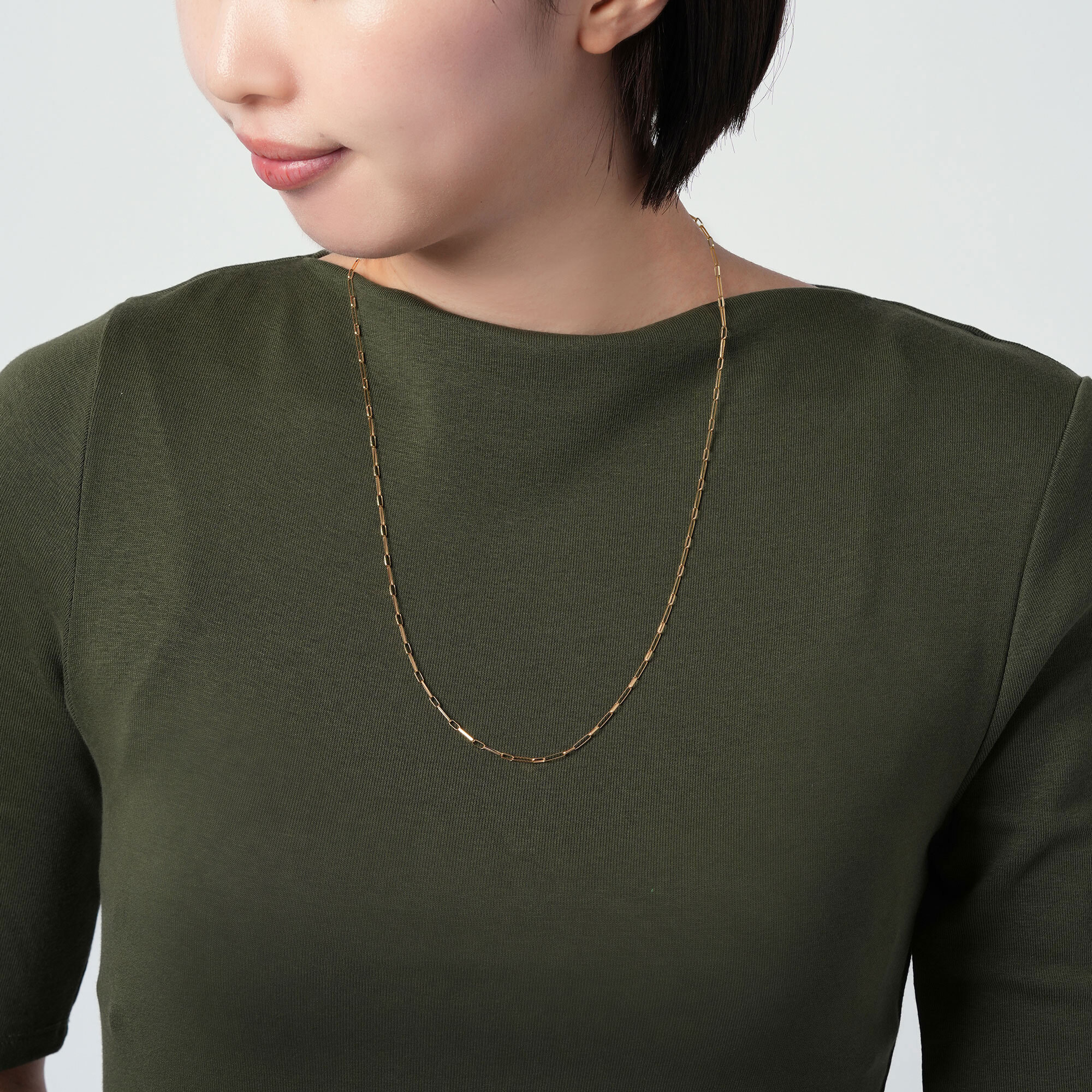 職人がひとコマひとコマ丁寧に繋ぎ合わせたチェーンは、60cmと長めの作りで、1本で着けるのはもちろん他のネックレスとの重ね着けもおすすめ。