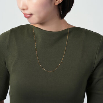 短いコマと長いコマを交互に組み合わせたチェーンは、シンプルでありながら程よい存在感を感じられ、コーディネートに洗練された輝きをプラスします。