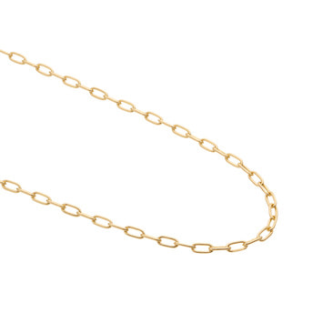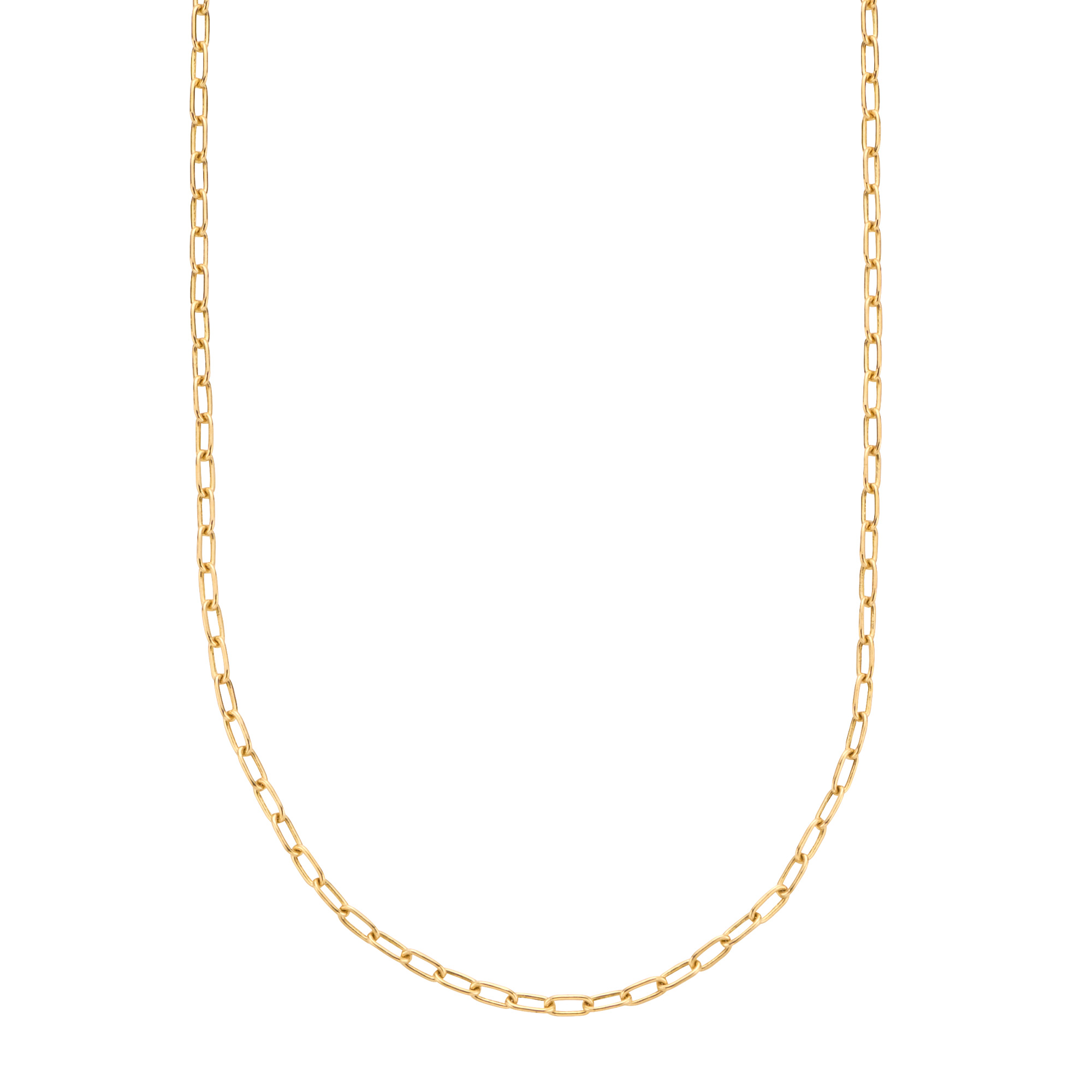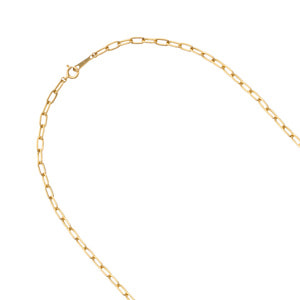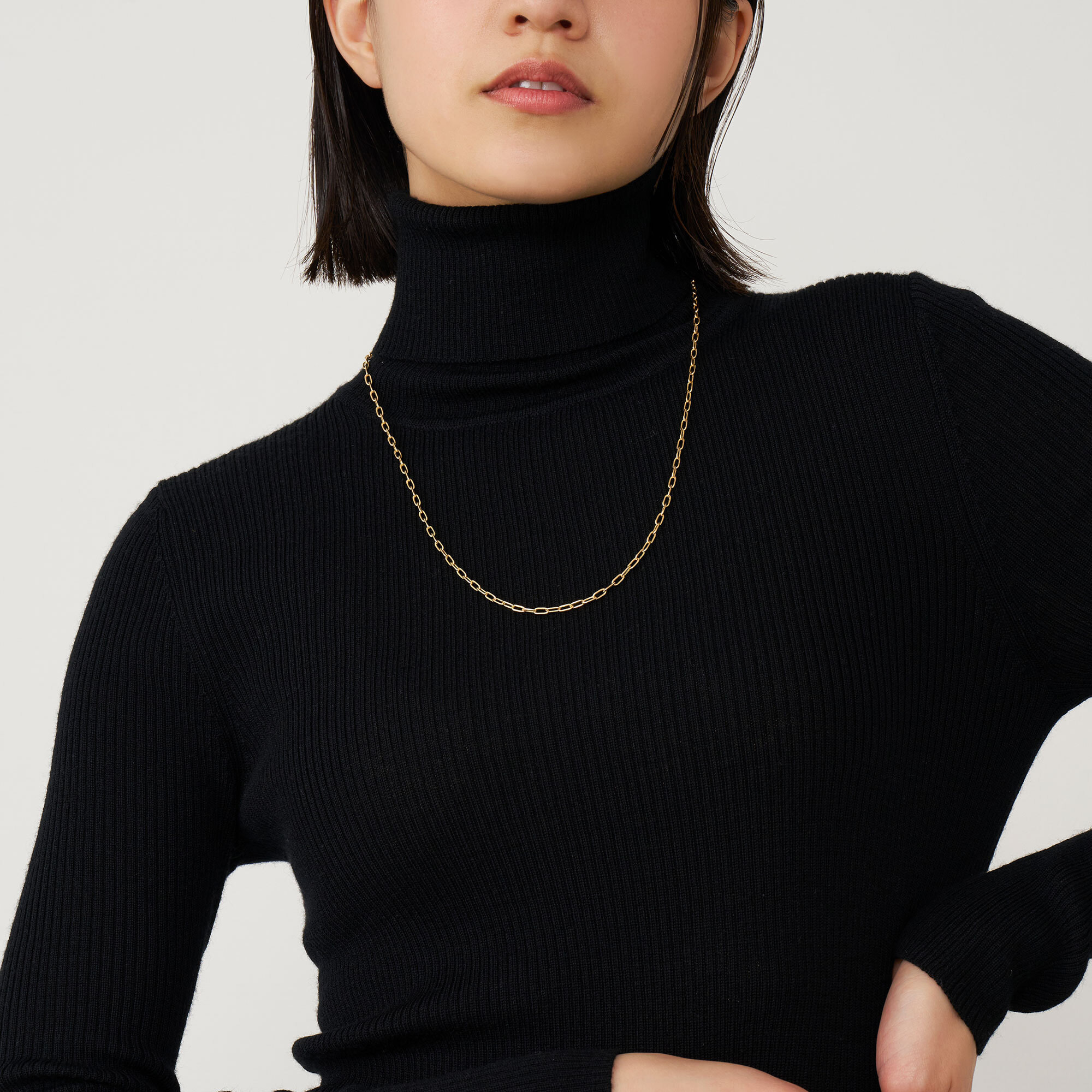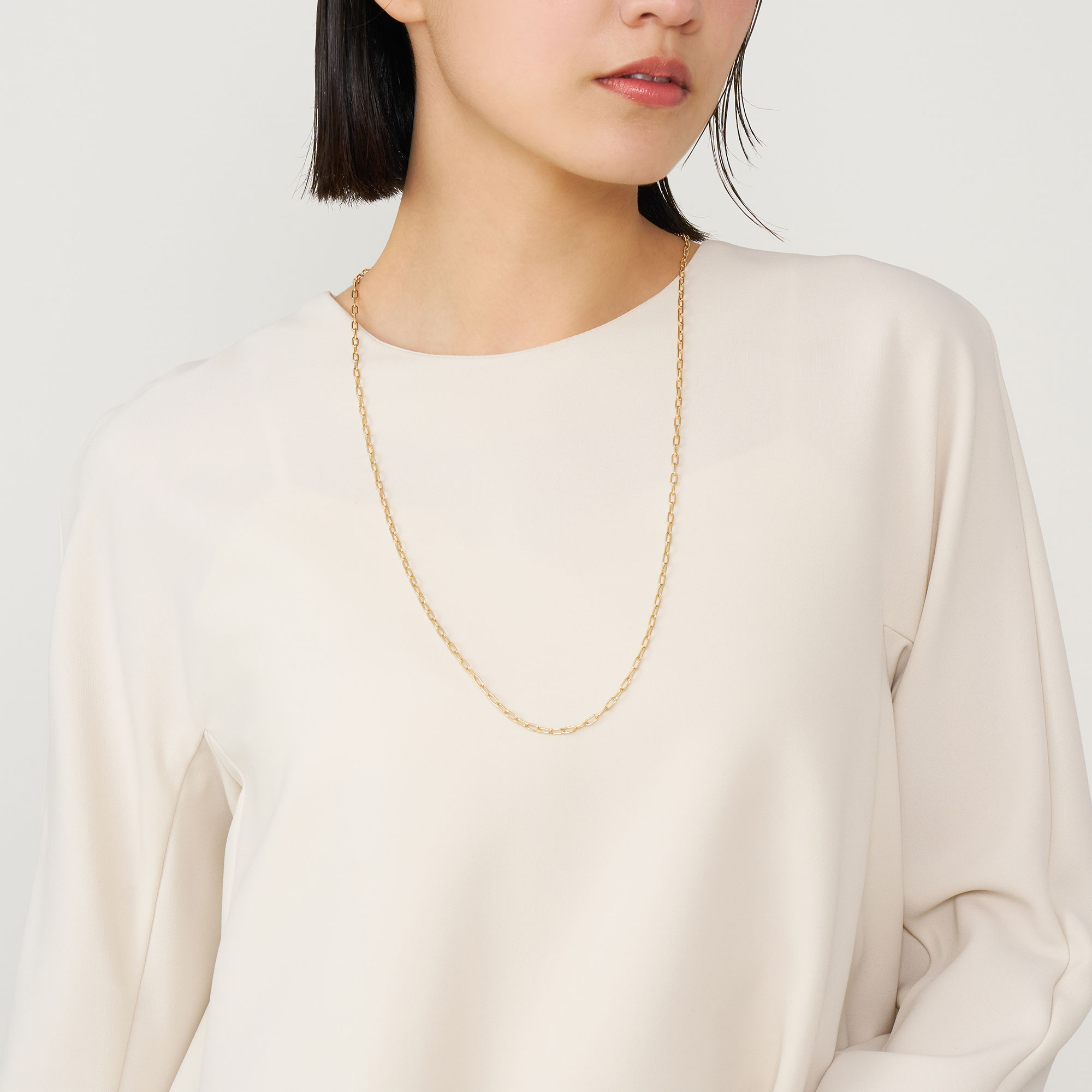 ペーパークリップチェーンと呼ばれる少し長めのコマが連なるデザイン。抜け感がモダンな雰囲気を醸しつつ、コマが長すぎないのでトラディショナルなムードも感じられます。