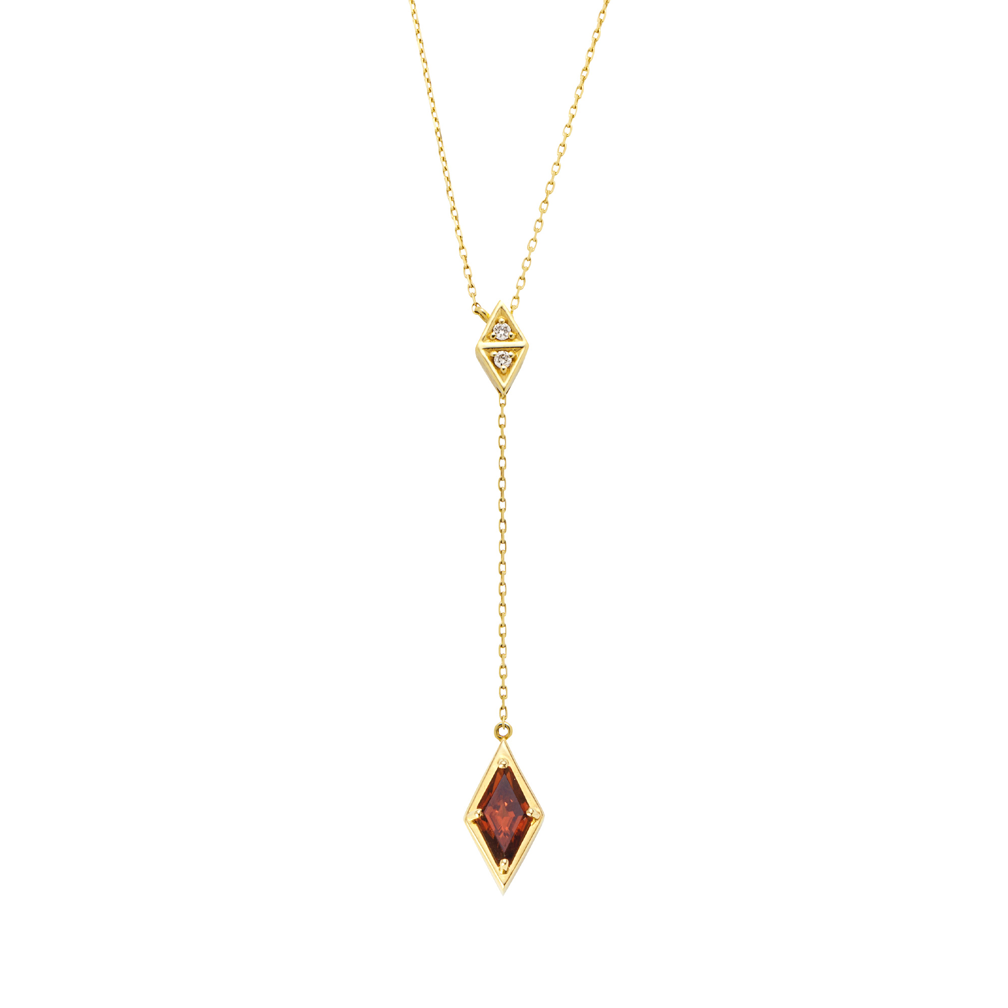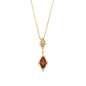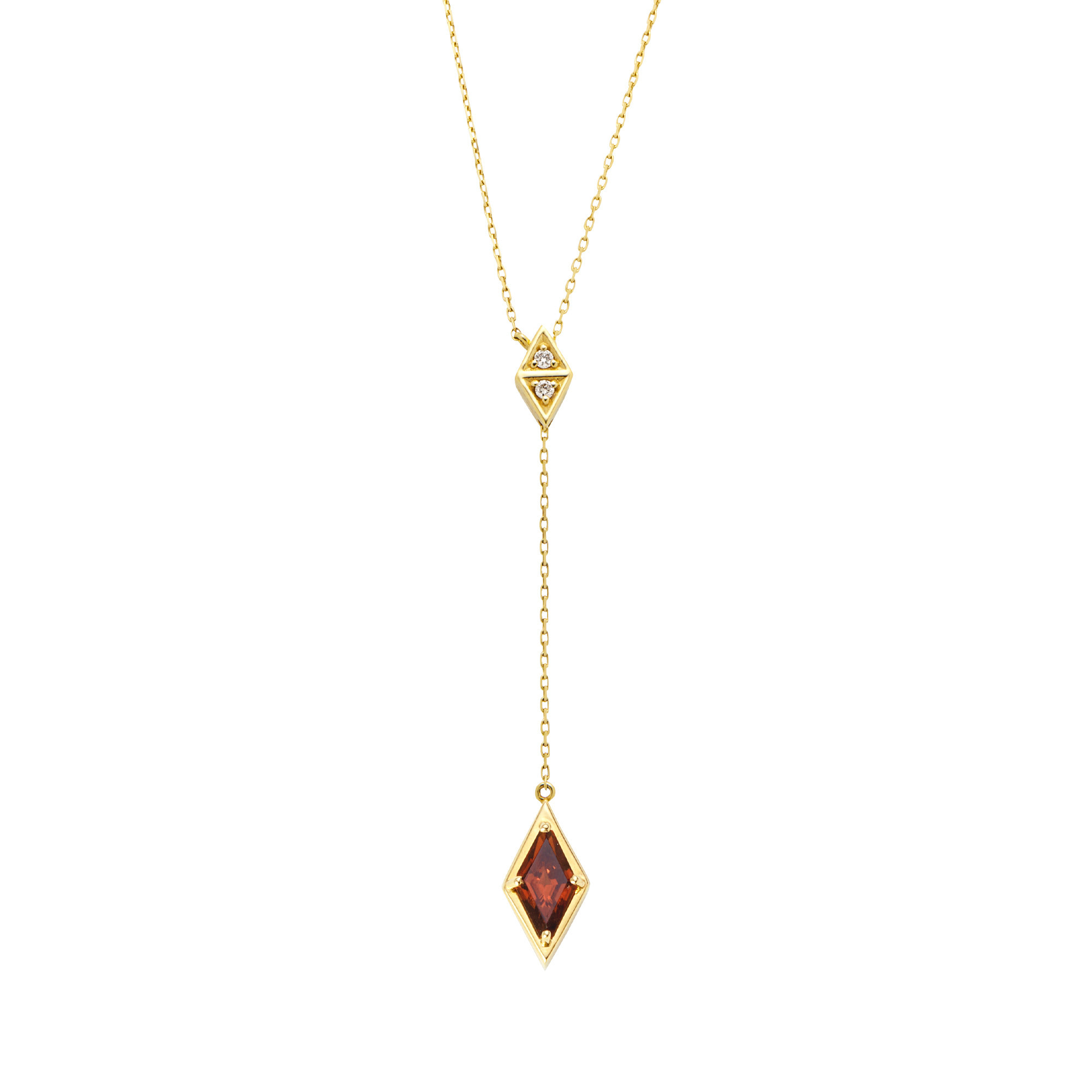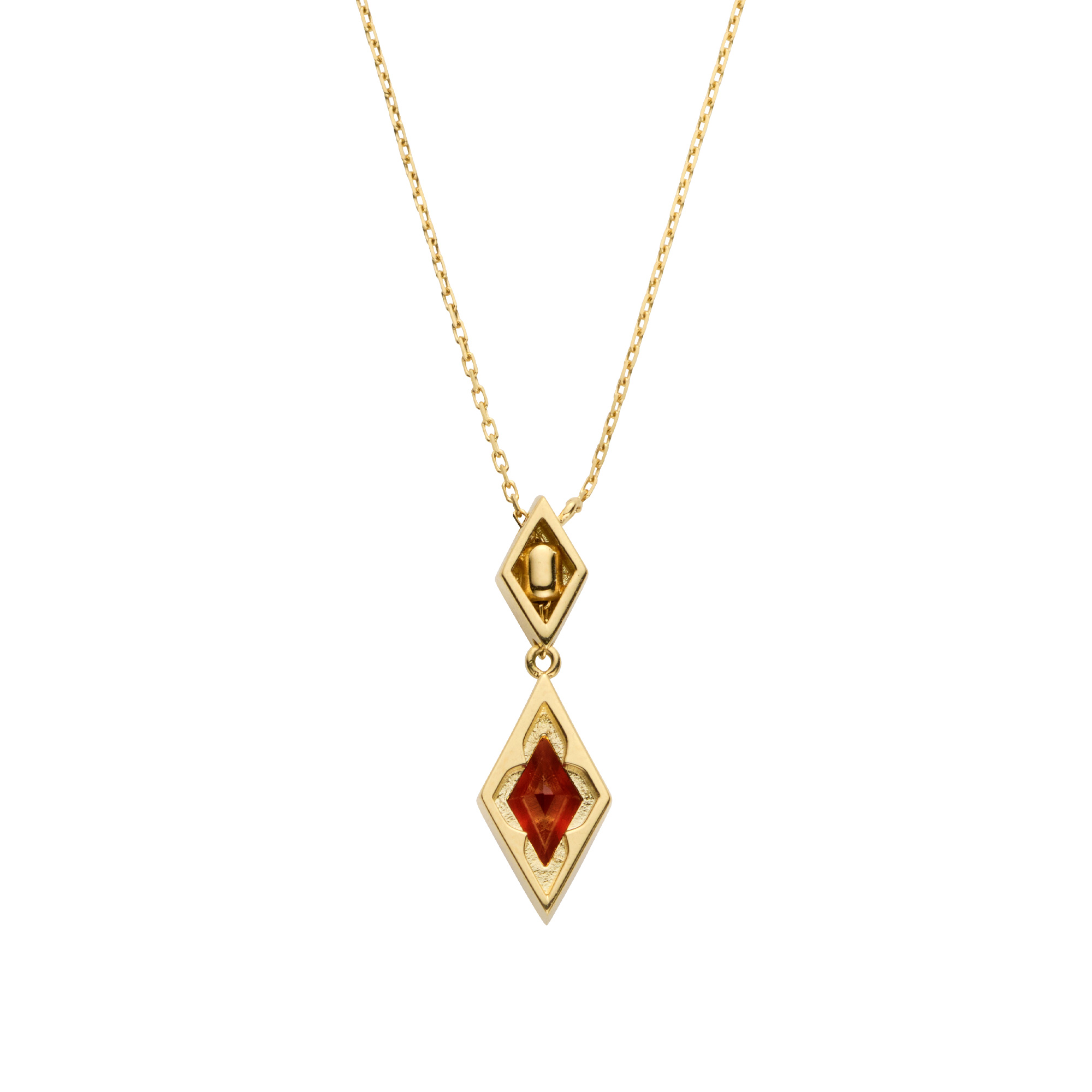 チェーンを長めに下げれば、縦のラインを強調しスタイリングを凛と引き締め、菱形を合わせるように着けるとシルエットを強調し存在感を放ちます。