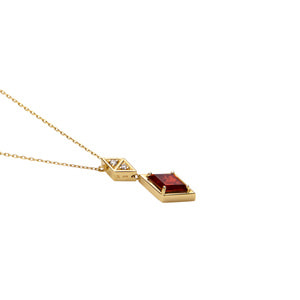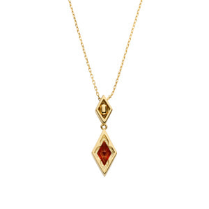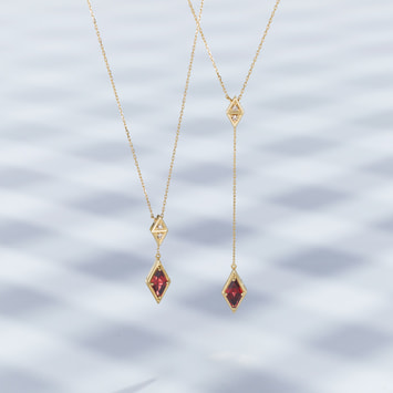 鮮やかな赤色のガーネットはモードな印象を演出。