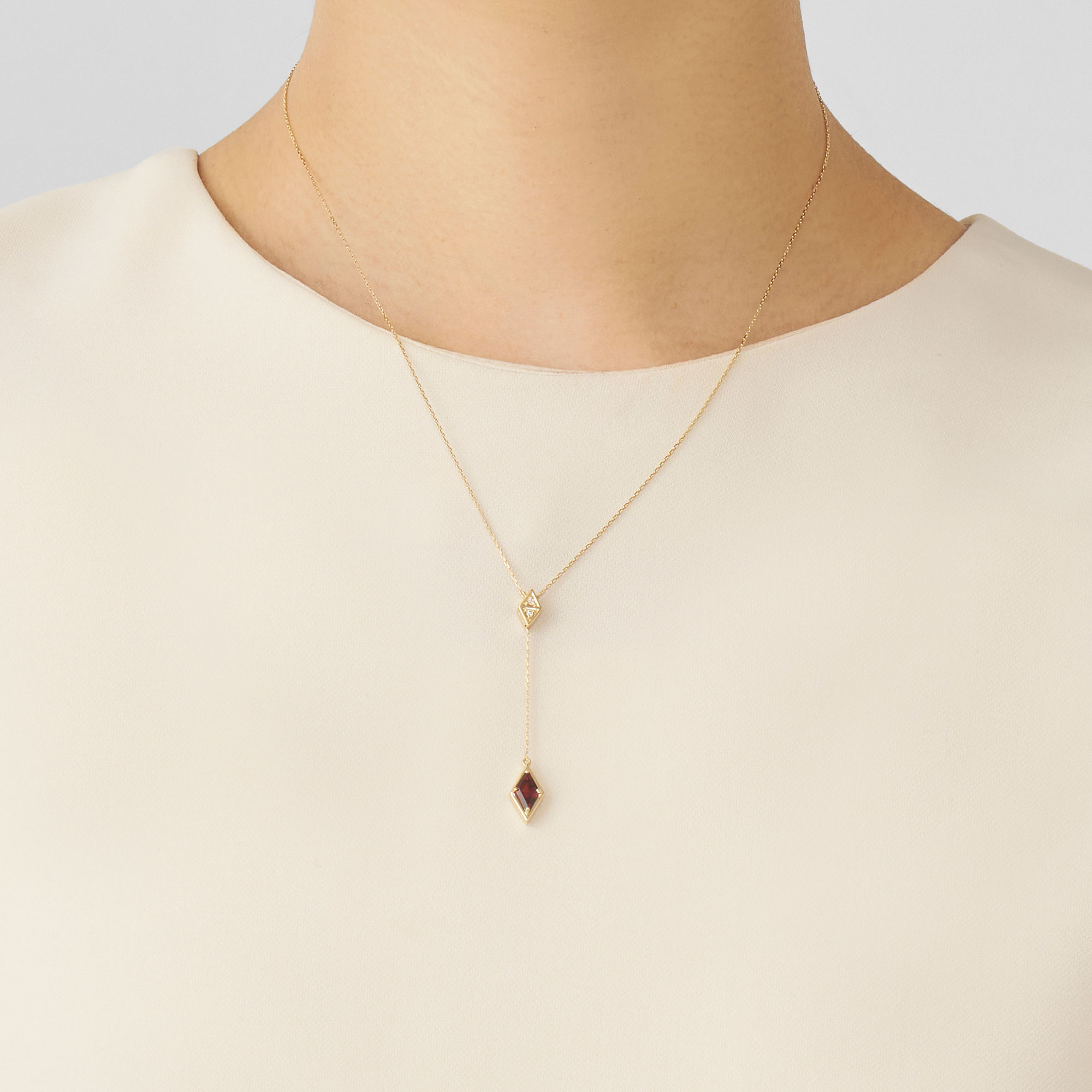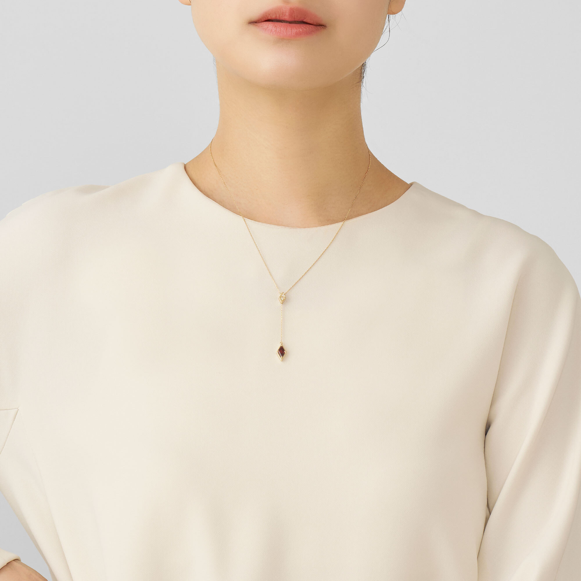 ネックレスのトップはY字ラインにも変化する2wayタイプ。