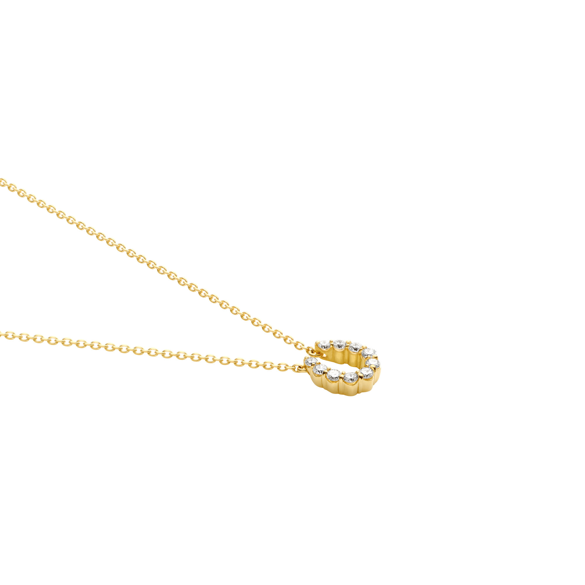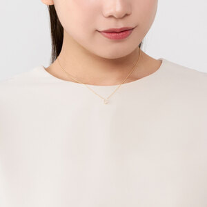 粒感のあるダイヤモンドのエレガントなきらめきがイエローゴールドの光をまとい、胸元に華やかさをもたらします。