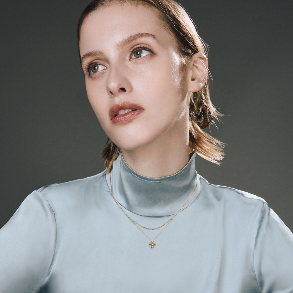 身につけた時に、透かしの模様が浮かび上がり、デコルテで繊細に煌めきます。