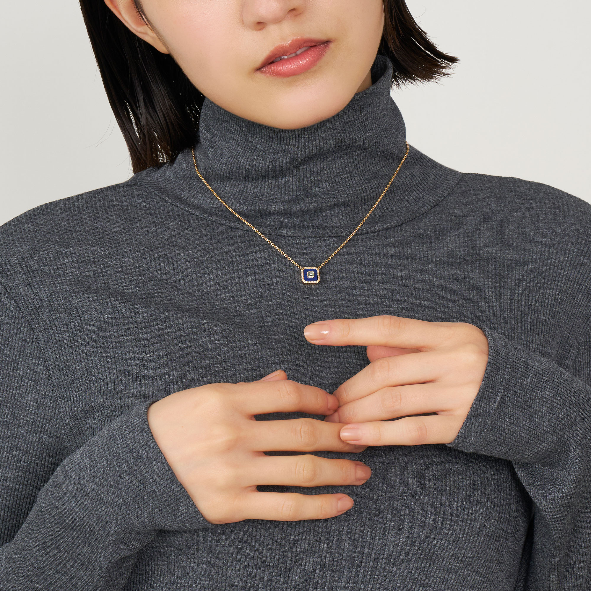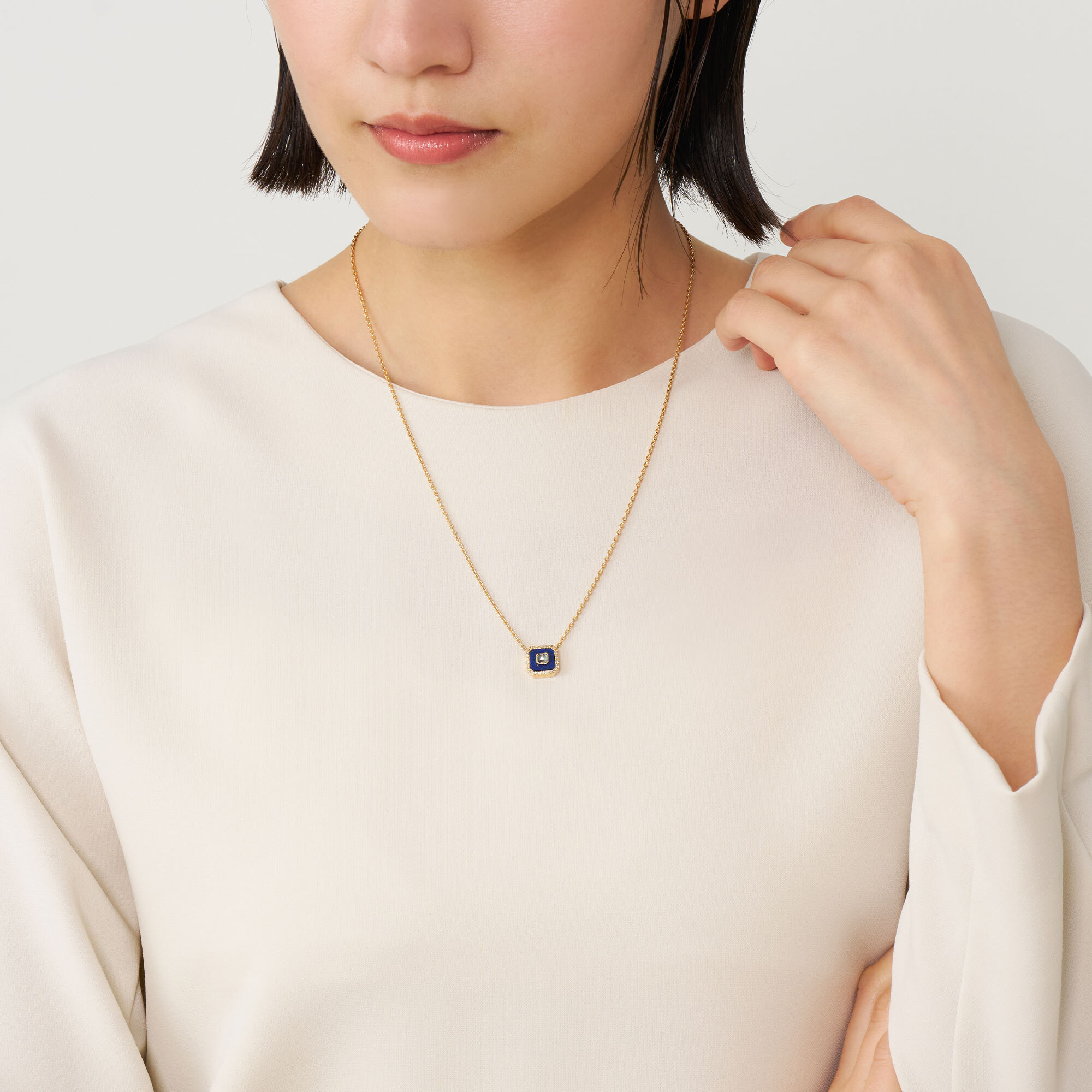 深い海のようなブルーのネックレスは、胸元に洗練された色彩を放ちます。
