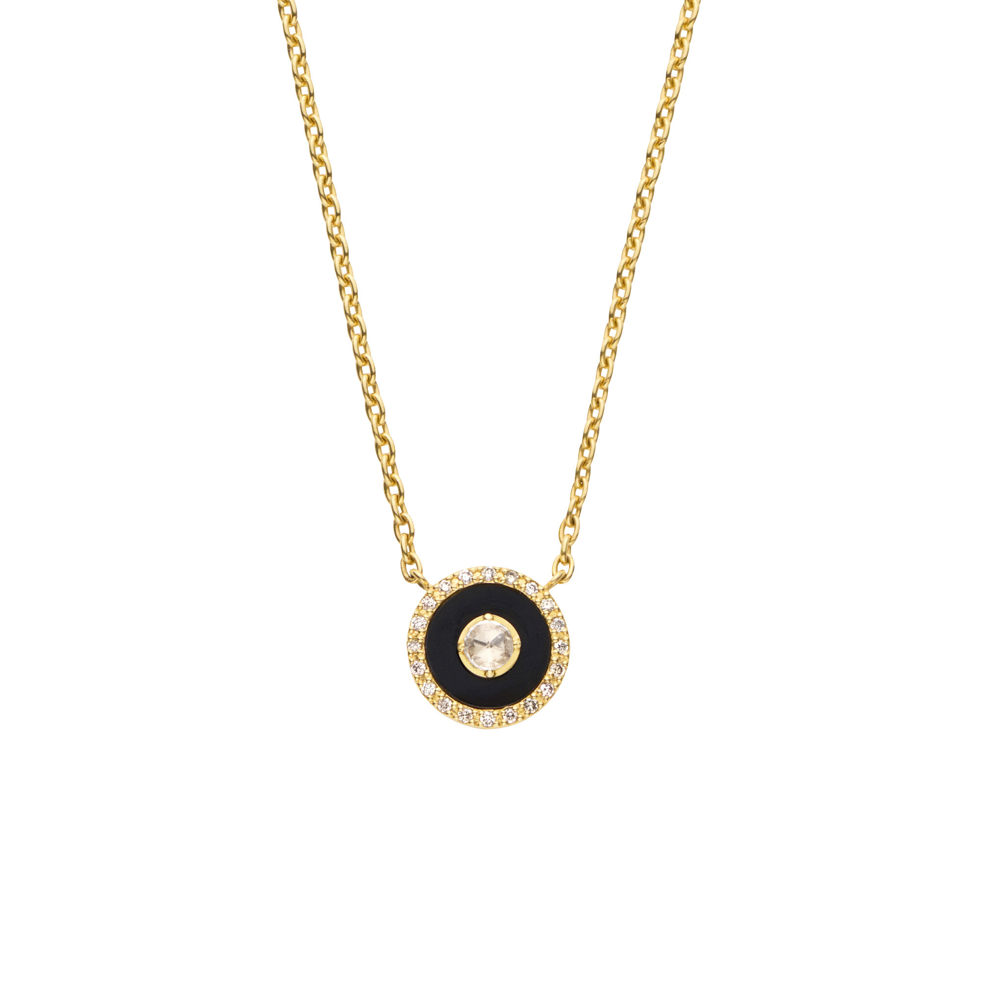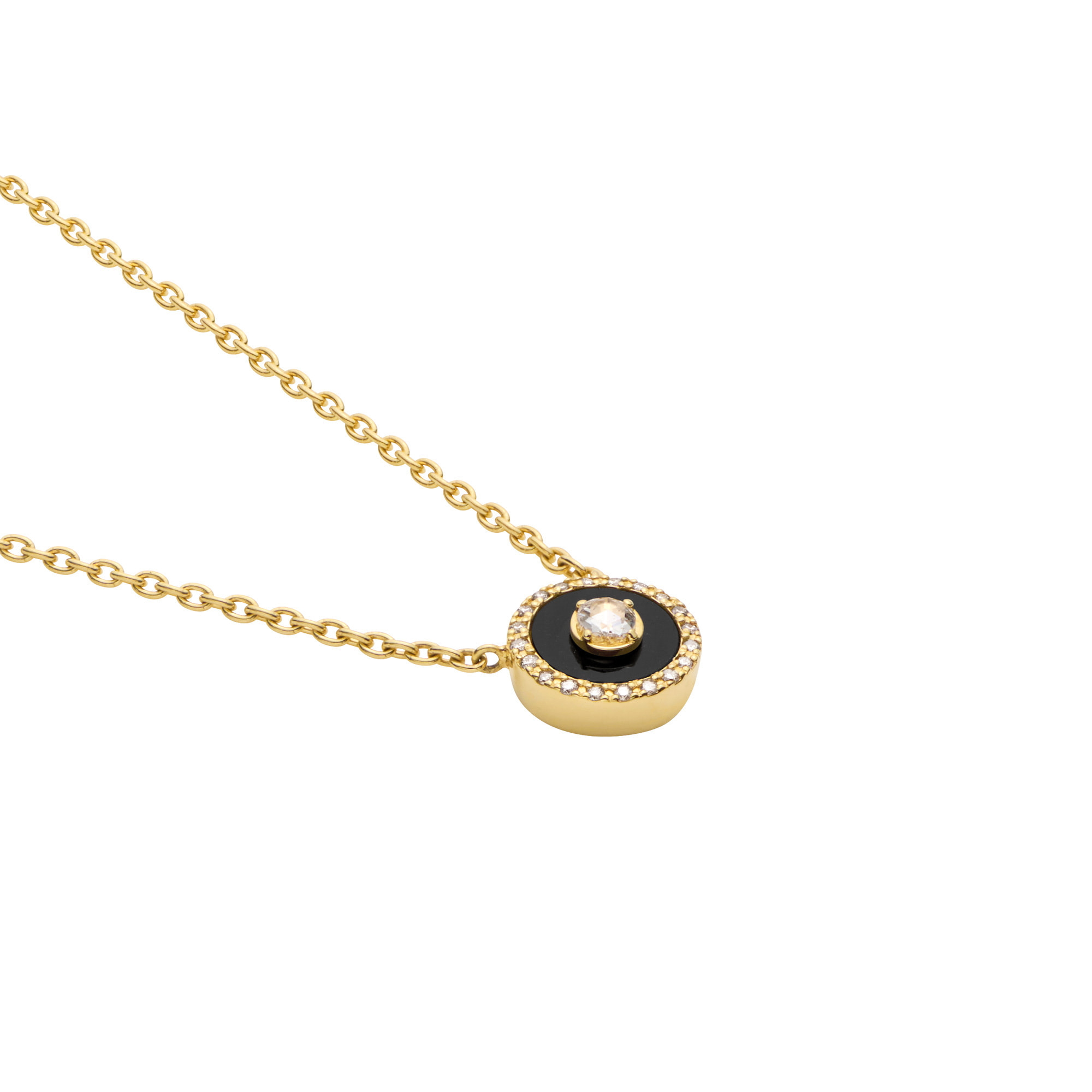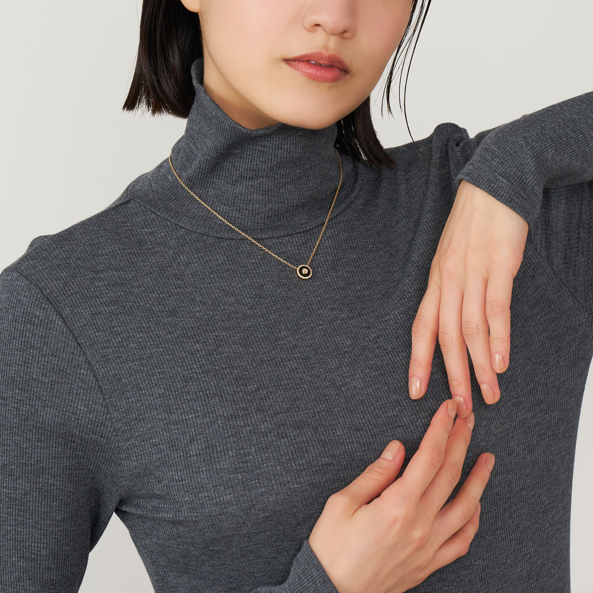 漆黒の黒と瑞々しい輝きのダイヤモンドが印象的なネックレス。