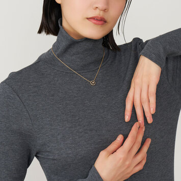 イエローゴールドで描く円のフォルムは端正な仕上がり。やや太めのチェーンでマニッシュなテイストにもマッチします。