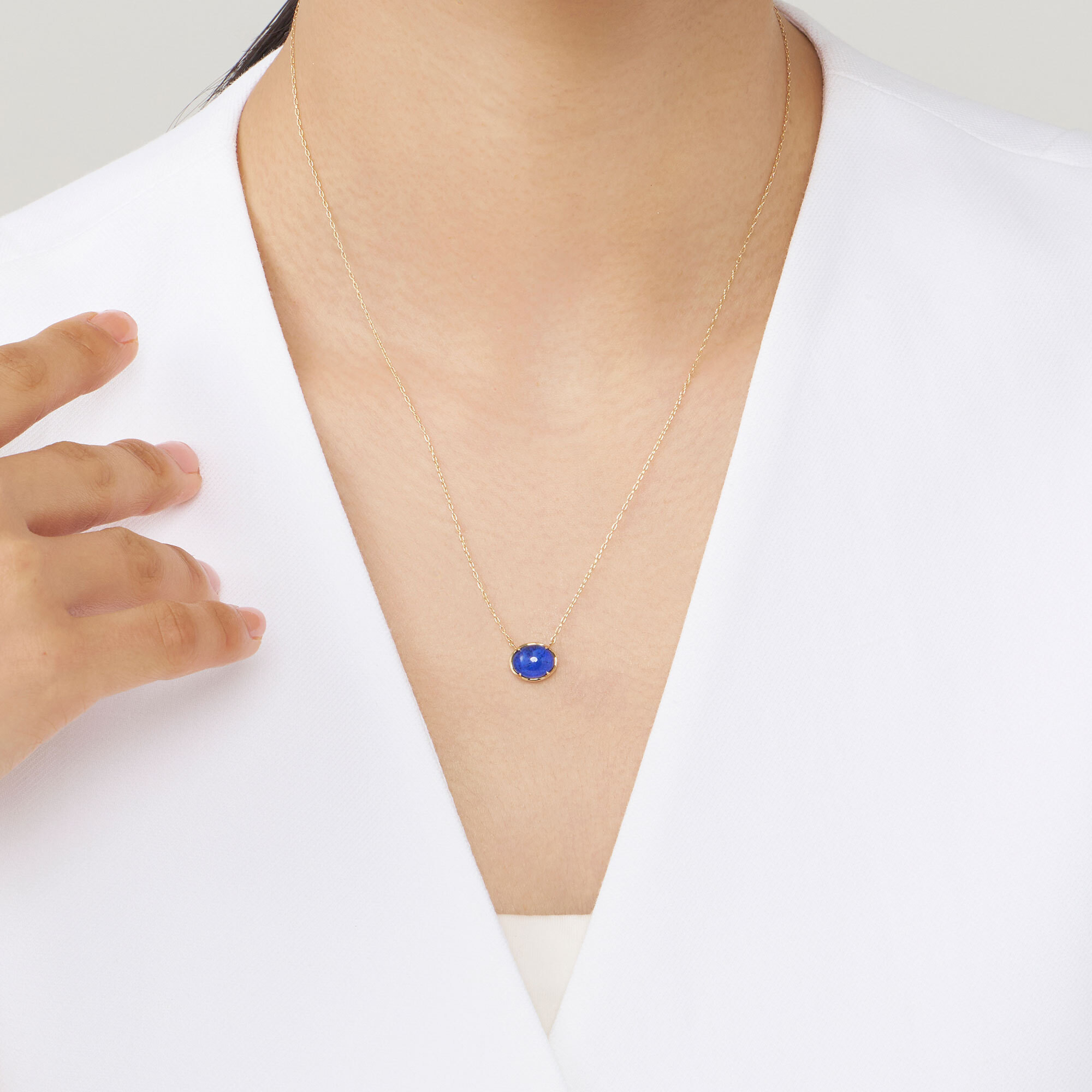 真っ青な地中海の色を思わせるカラーストーンが、胸元にみずみずしい印象をまとわせるネックレス。
