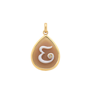 イニシャルが彫刻されたシェルカメオのペンダントチャーム。
