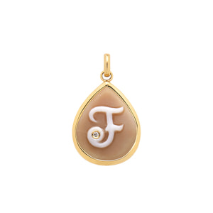 イニシャルが彫刻されたシェルカメオのペンダントチャーム。