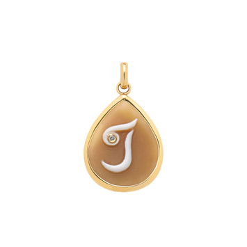 イニシャルが彫刻されたシェルカメオのペンダントチャーム。