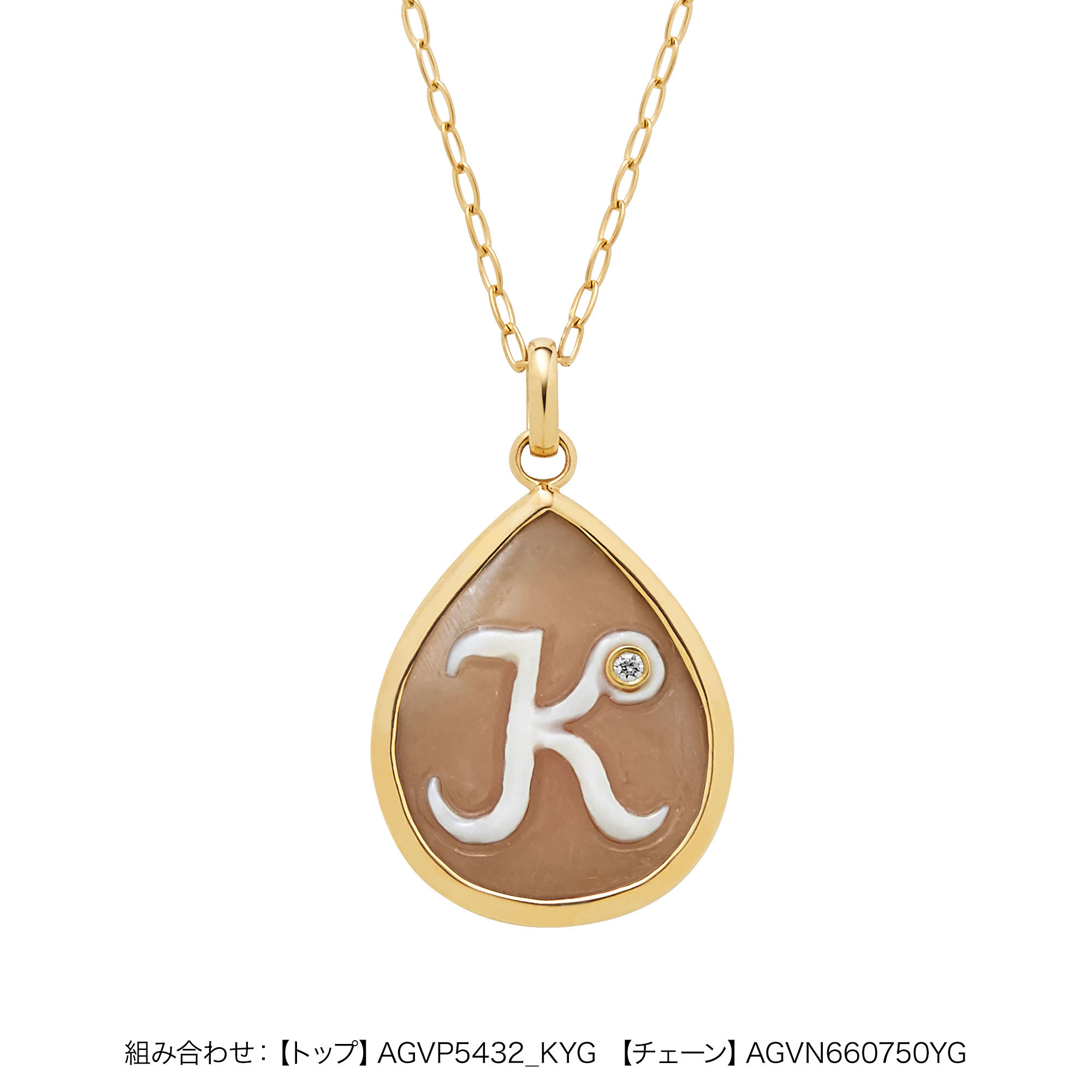 肖像画などオーバル型のカメオデザインが多い中、モダンでオリジナリティを追求できるパーソナライズドイニシャルカメオコレクションは、ドロップ型のデザインもポイントです。バランス良く、胸元を個性的かつ印象的に演出します。