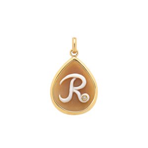 イニシャルが彫刻されたシェルカメオのペンダントチャーム。
