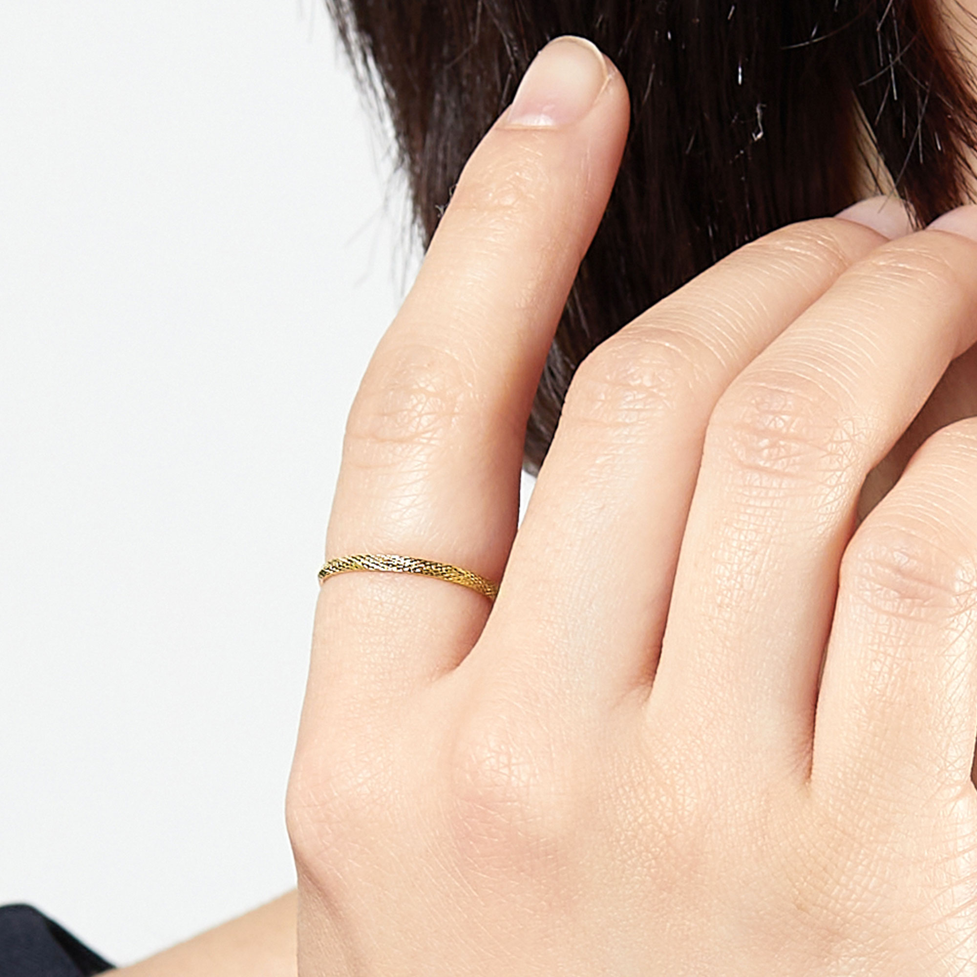 重ね着けはもちろん、模様が途切れないので人差し指にもおすすめ。