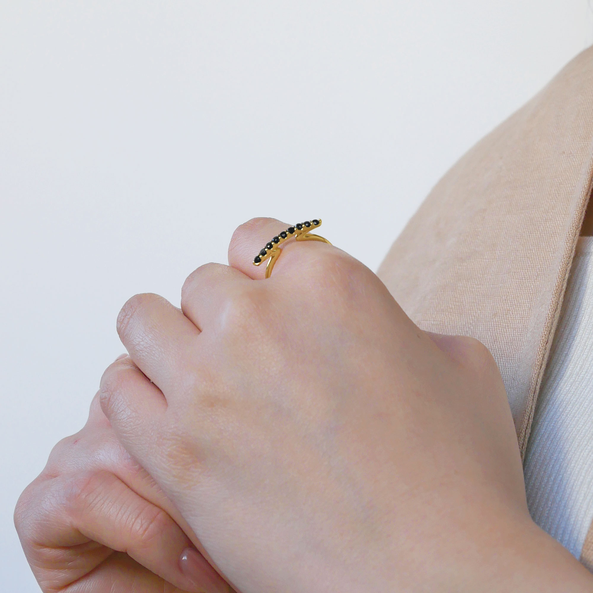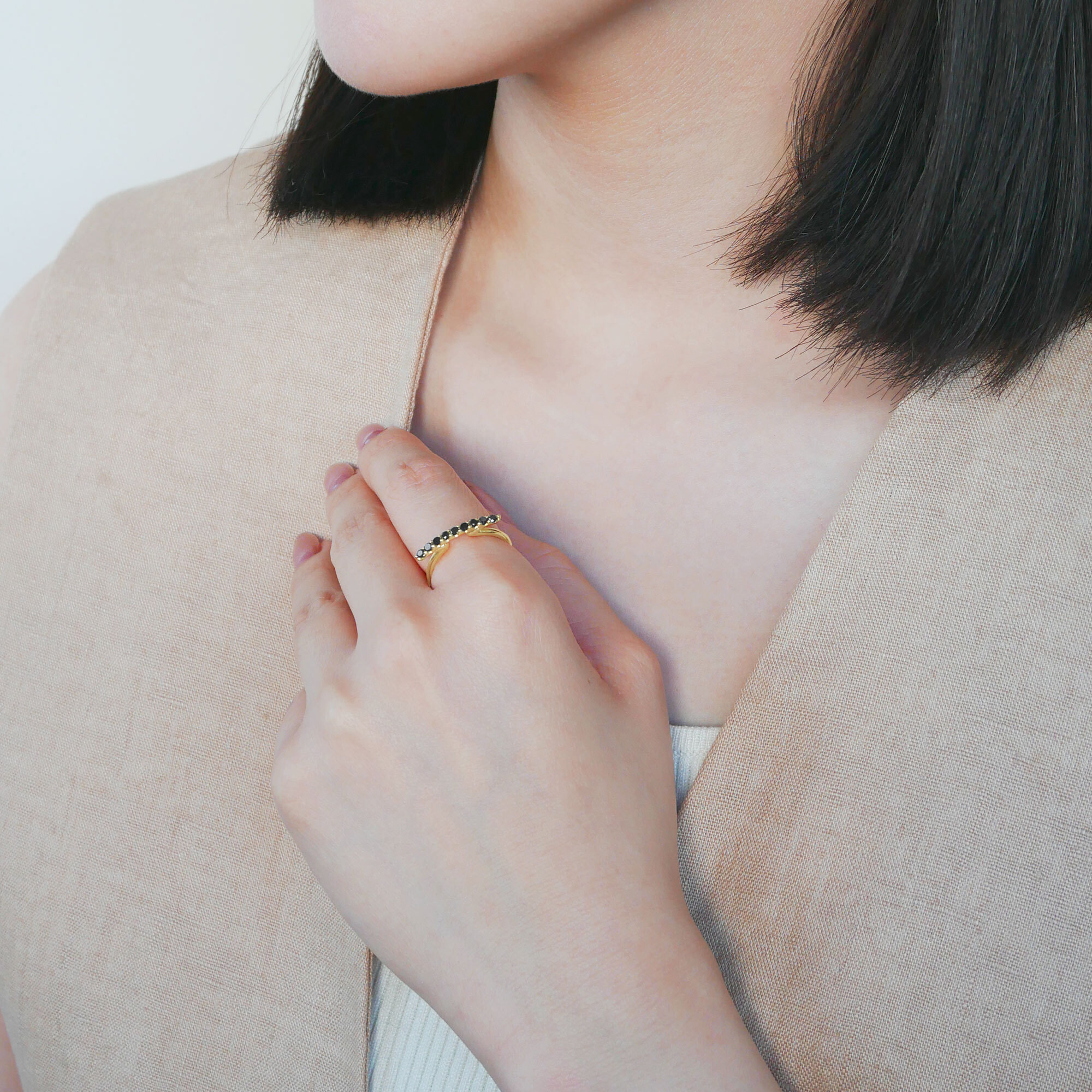 漆黒のブラックダイヤモンドがシックでエレガントなきらめきをもたらすリング。