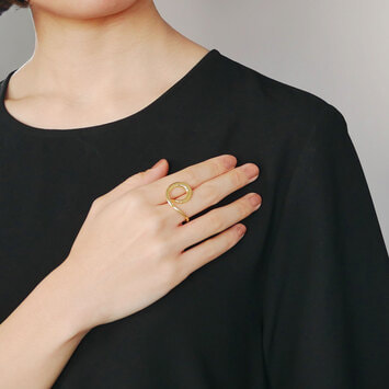 隣の指にまで伸びていくようなシルエット、ダイナミックで優美なデザインが手元にインパクトのある輝きをもたらします。