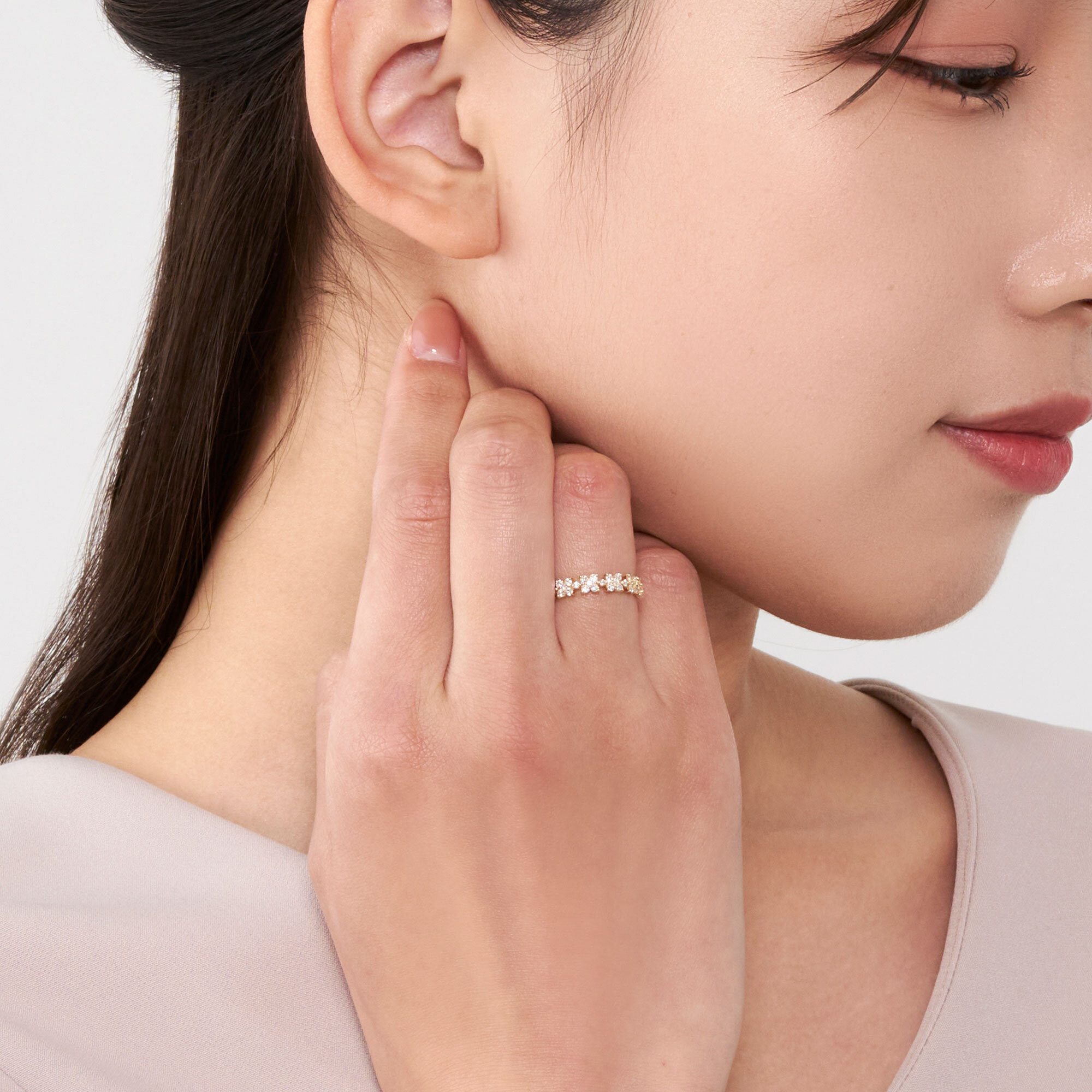 ダイヤモンドの粒感を活かして、瑞々しくつややかな花びらを連ねたエタニティタイプのデザイン。