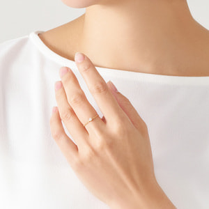 着用の際は、チェーンがねじれていない状態で指を入れ、トップが転がらないよう全体的に少しずつ、指の根元の方におろしていってください。