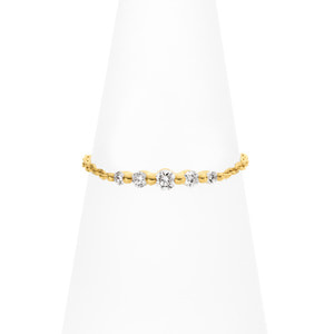 リズミカルに連なる5石のダイヤモンドと繊細なチェーンが一体となって、手元に瑞々しい光をまとわせます。