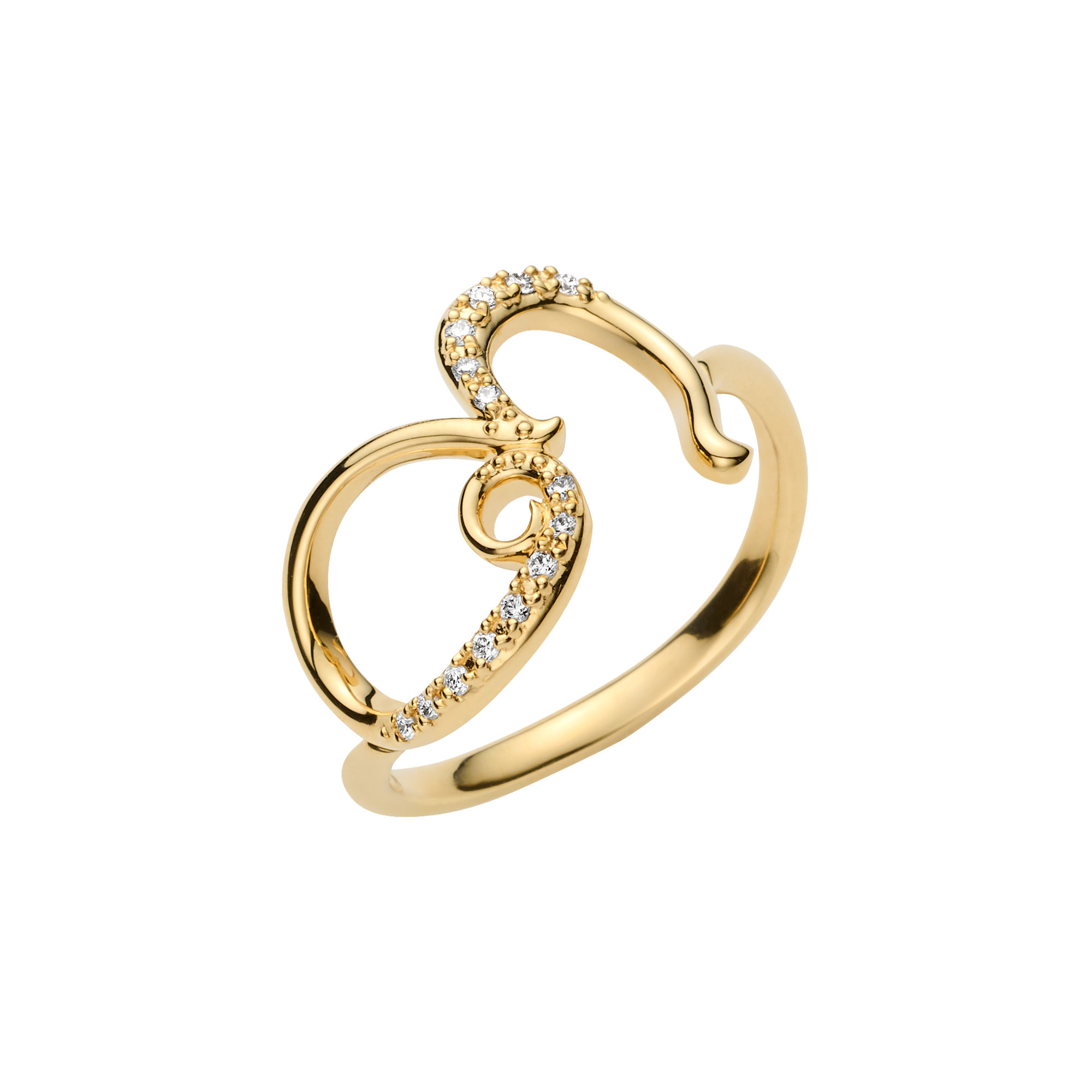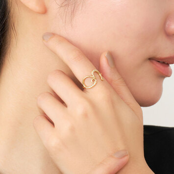 音色豊かな楽器のように、ダイヤモンドを纏った弦を指に巻き付けたようなフォルムが特徴のイニシャルリング。