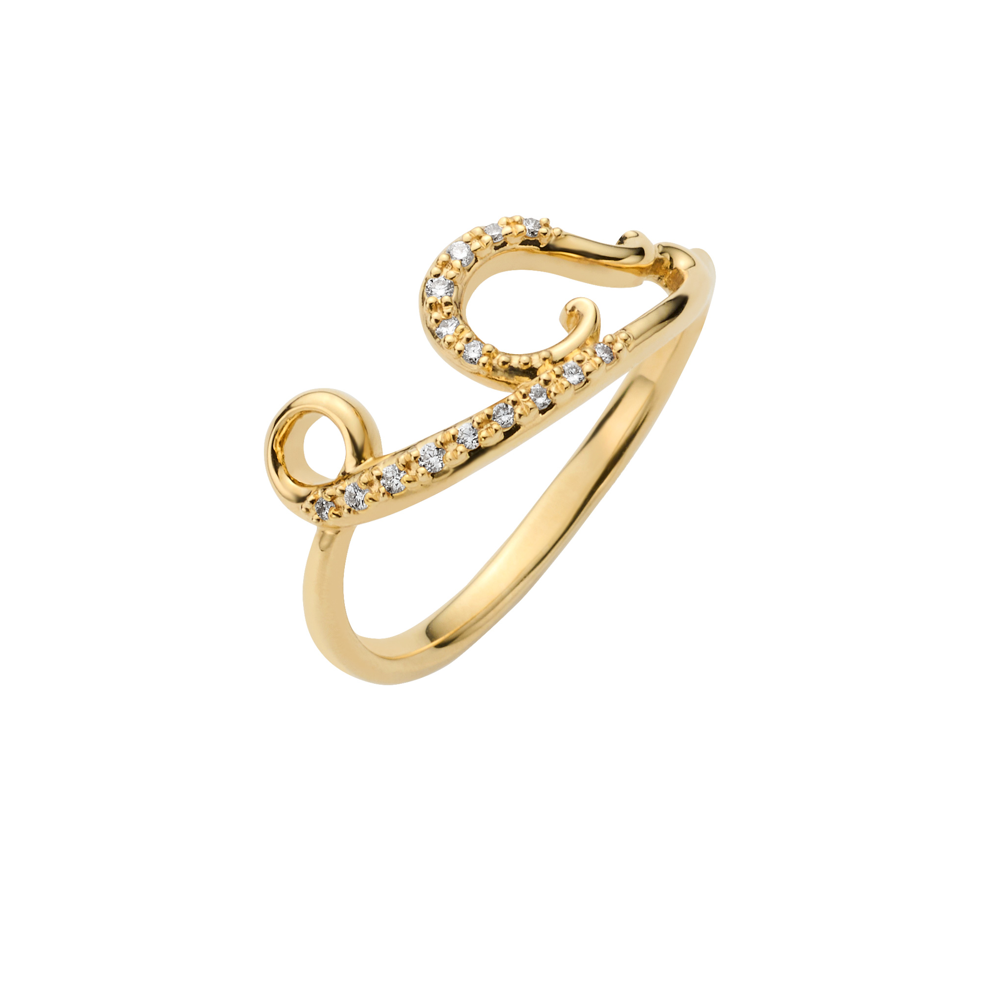 音色豊かな楽器のように、ダイヤモンドを纏った弦を指に巻き付けたようなフォルムが特徴のイニシャルリング。