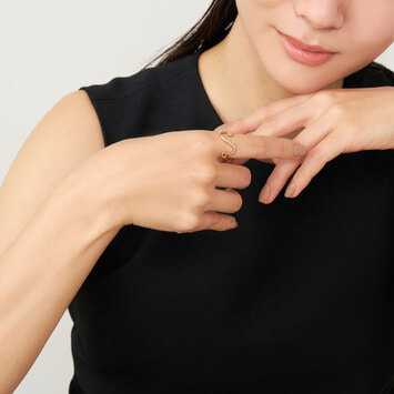 アルファベットを横に倒したデザインは、表情豊かな曲線が際立ち、イニシャルの存在感を抽象的に印象づけることで、洗練された大人の遊び心を楽しめます。