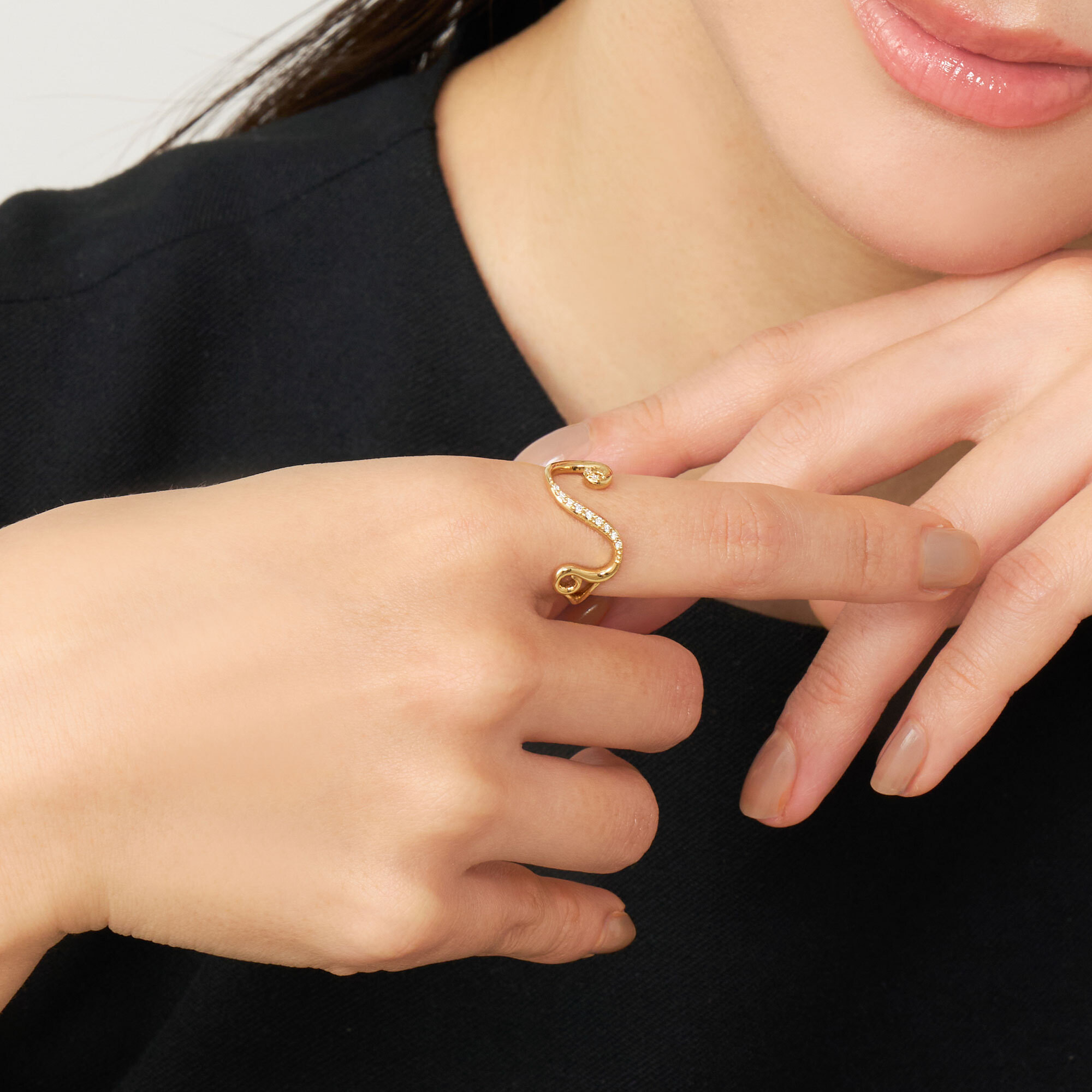 音色豊かな楽器のように、ダイヤモンドを纏った弦を指に巻き付けたようなフォルムが特徴のイニシャルリング。