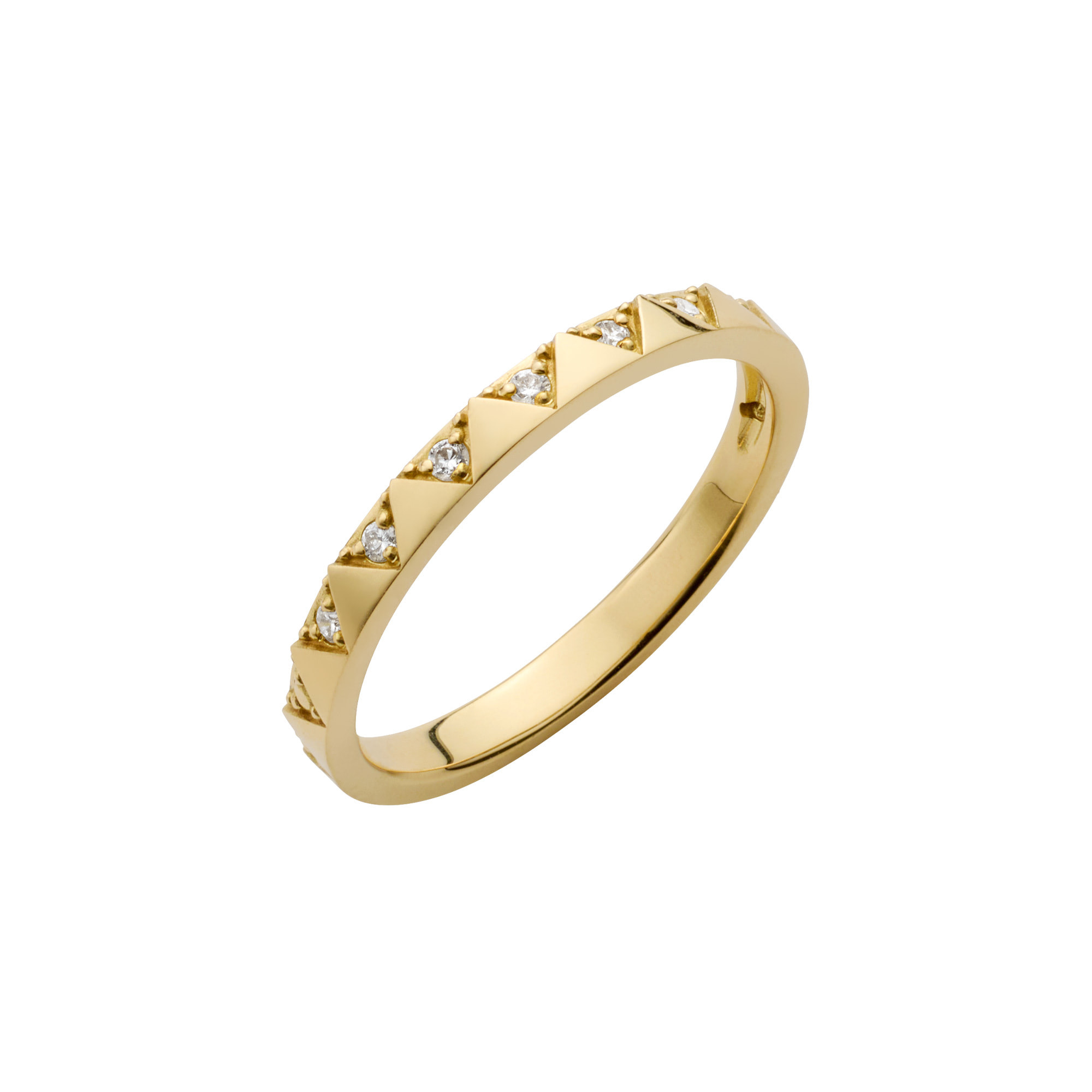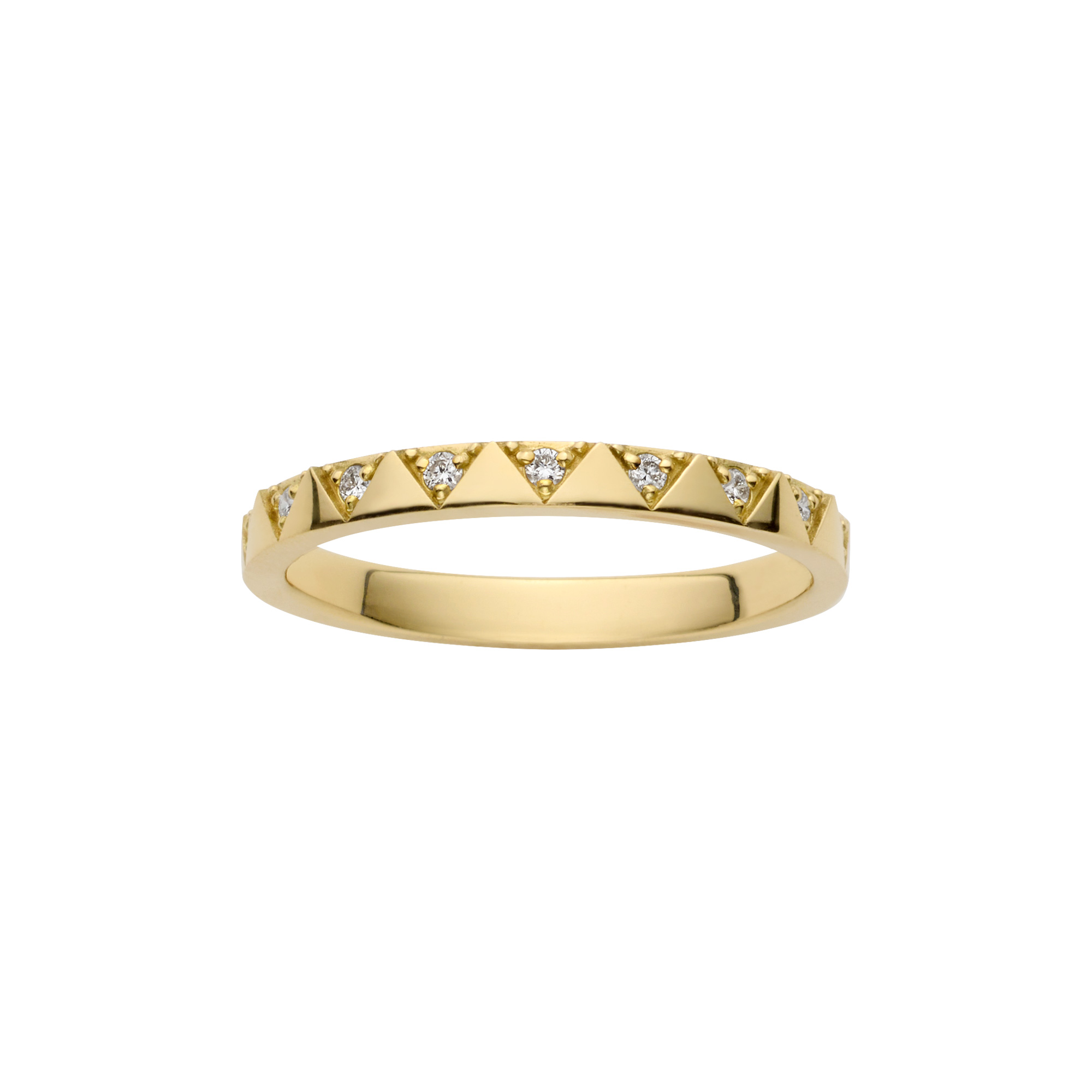 三角形の模様をグラフィカルに表現。ダイヤモンドの煌めきとイエローゴールドの幾何学的なパターンは、モダンな中にも遊び心を感じさせています。